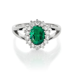Emerald And Diamond Halo Ring