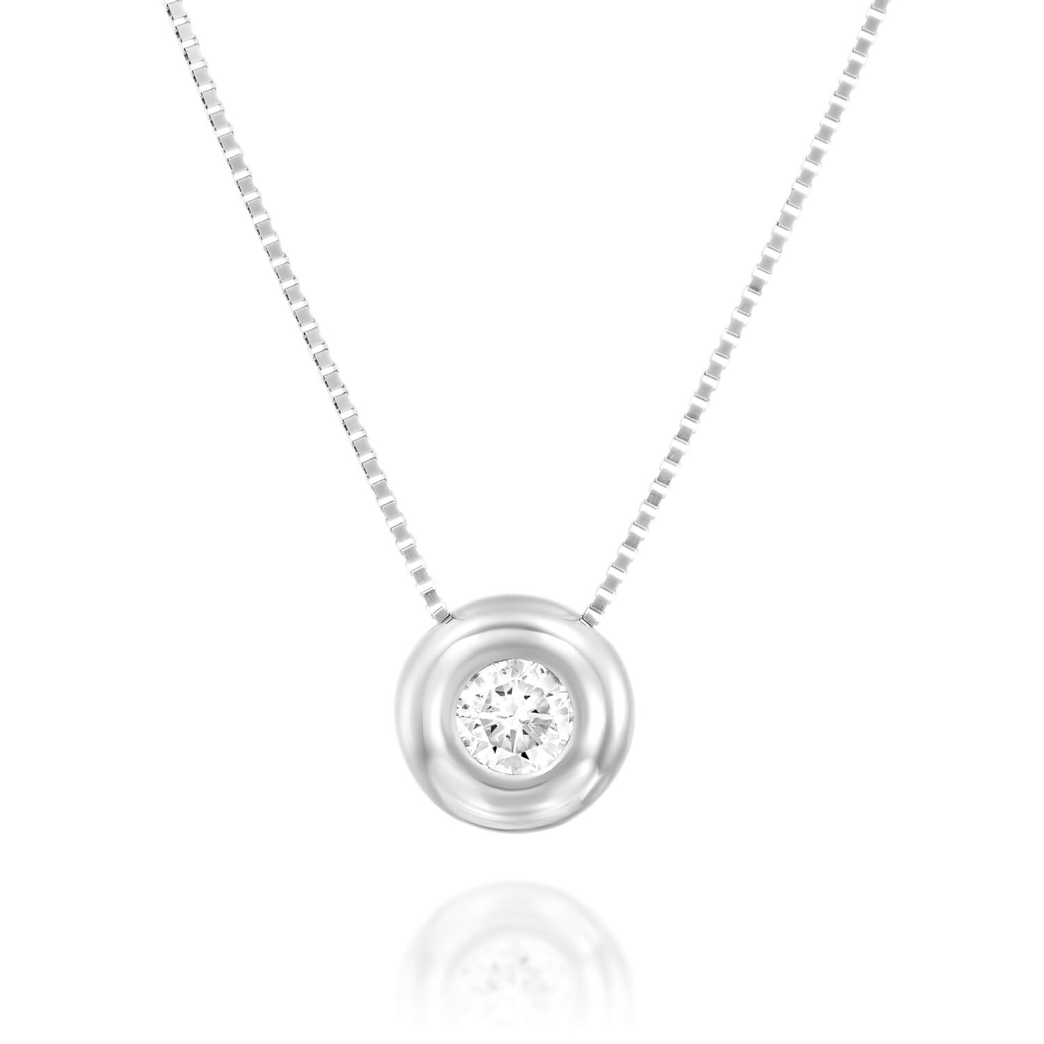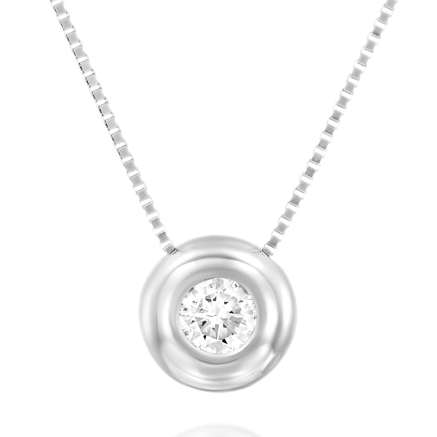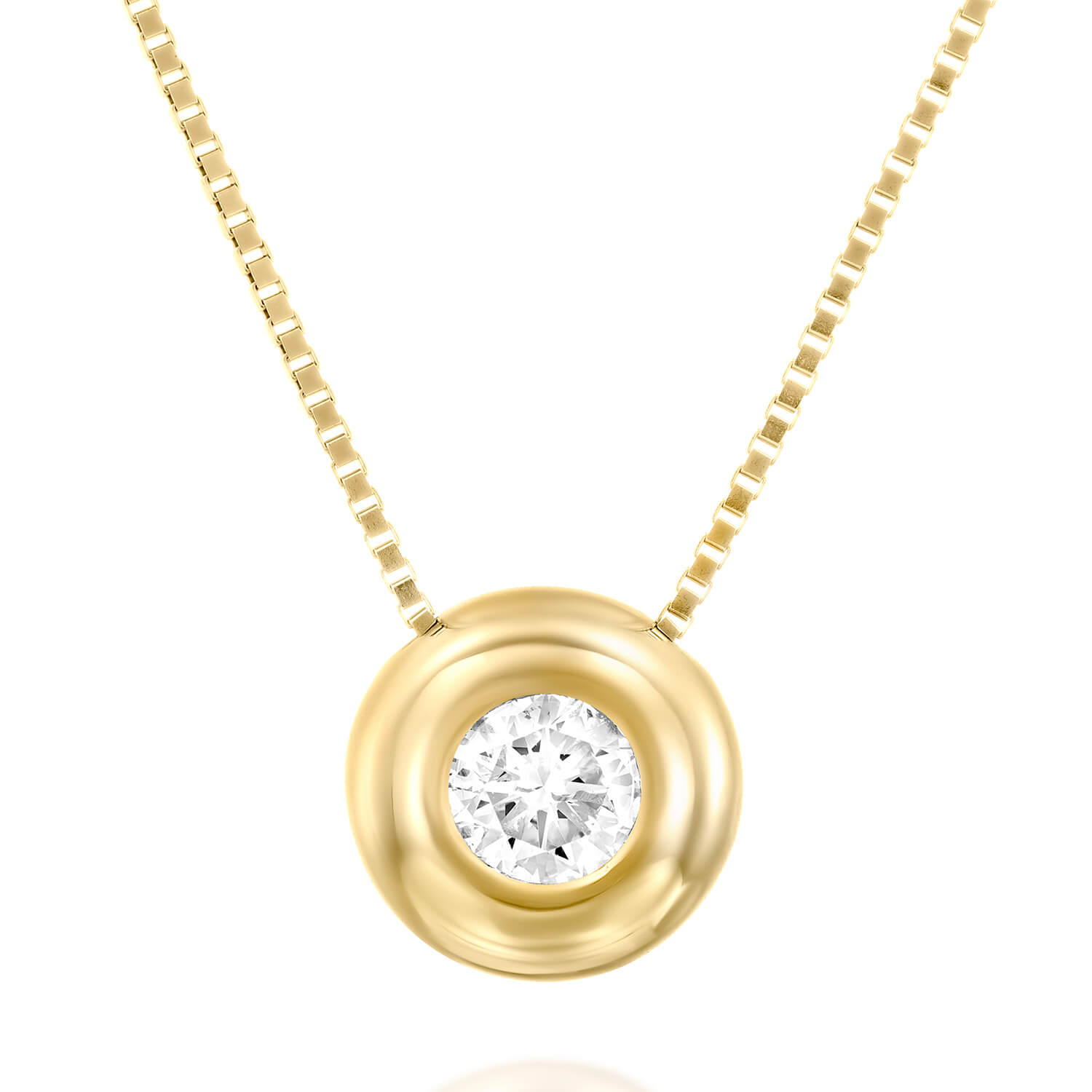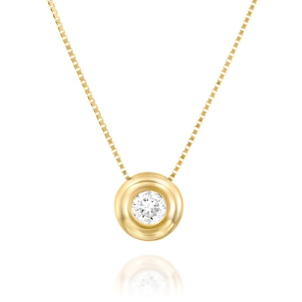 Bezel Diamond Necklace. A brilliant diamond with gold around it which embodies the jewelry