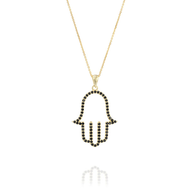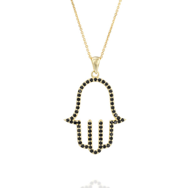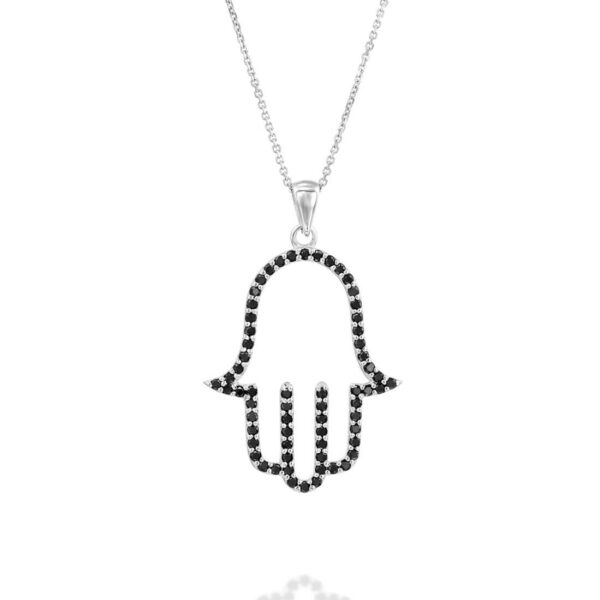 Big Hamsa Black Diamond Pendant - nature shiny