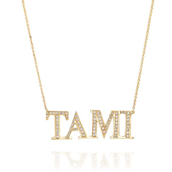 An impressive and glittering diamond necklace set with a 0.38-0.42 carat diamonds . A fashionable and present diamond necklace. It is possible to design any name between 3-5 letters, more than 5 letters will require an additional payment.