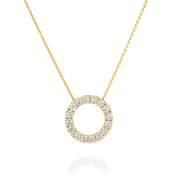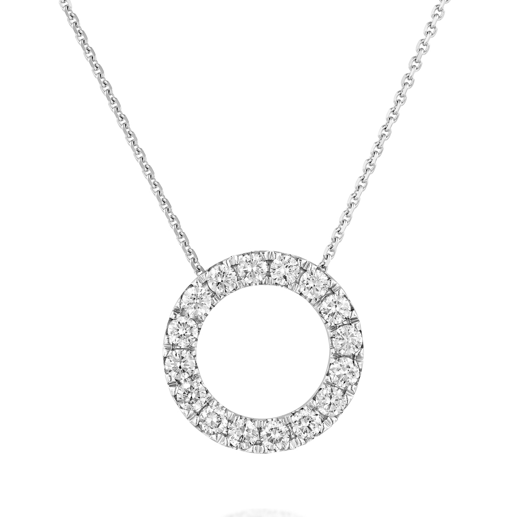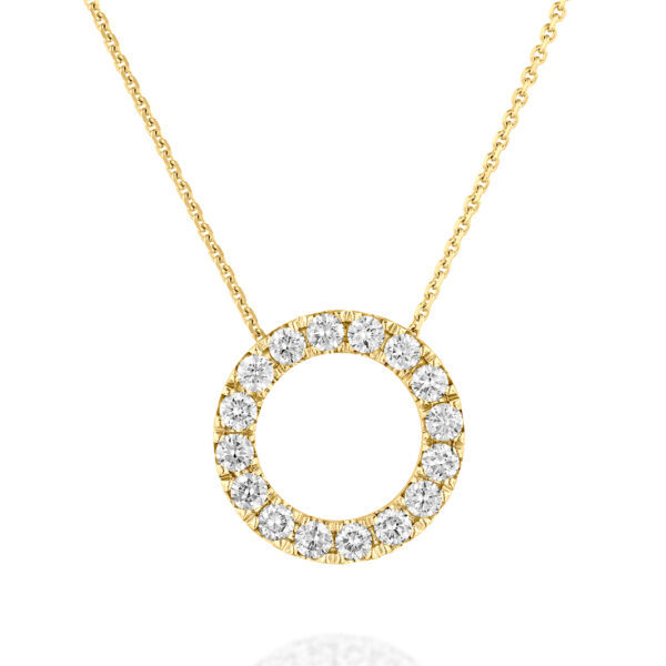 A stylish open circle diamond necklace with an impressive presence features 16 sparkling diamonds total weight 0.80 carats. A diamond pendant that combines elegance and innovation and creates a striking but refined pendant.