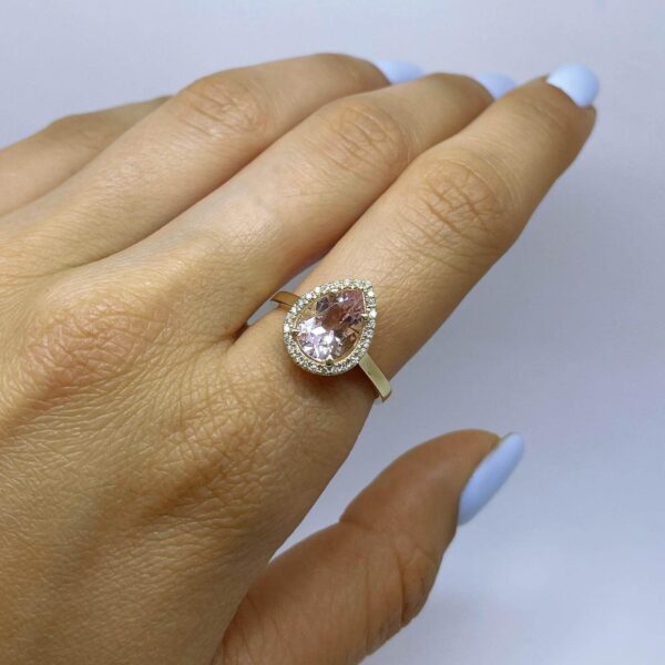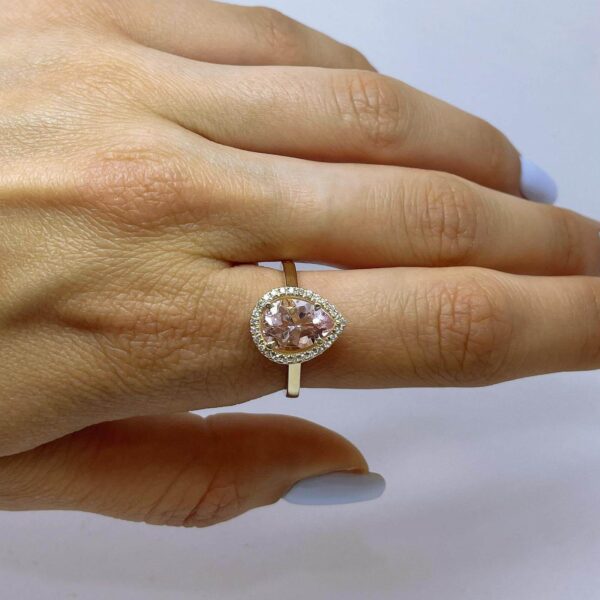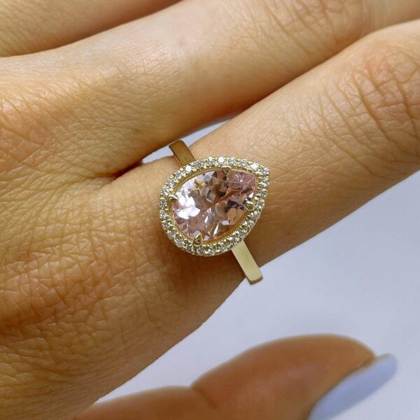 Big Pear Morganite and Diamond Engagement Ring - nature shiny