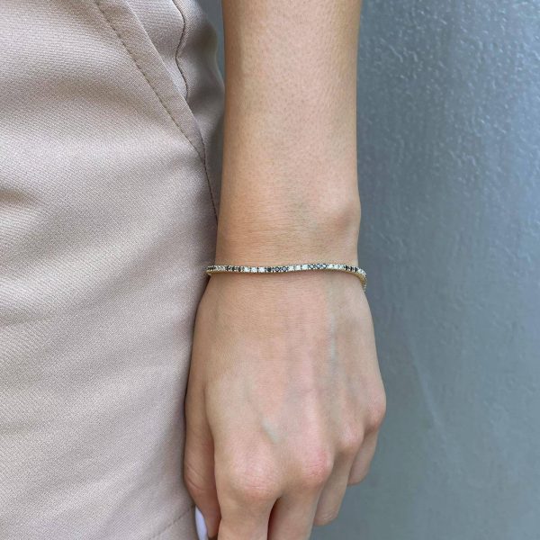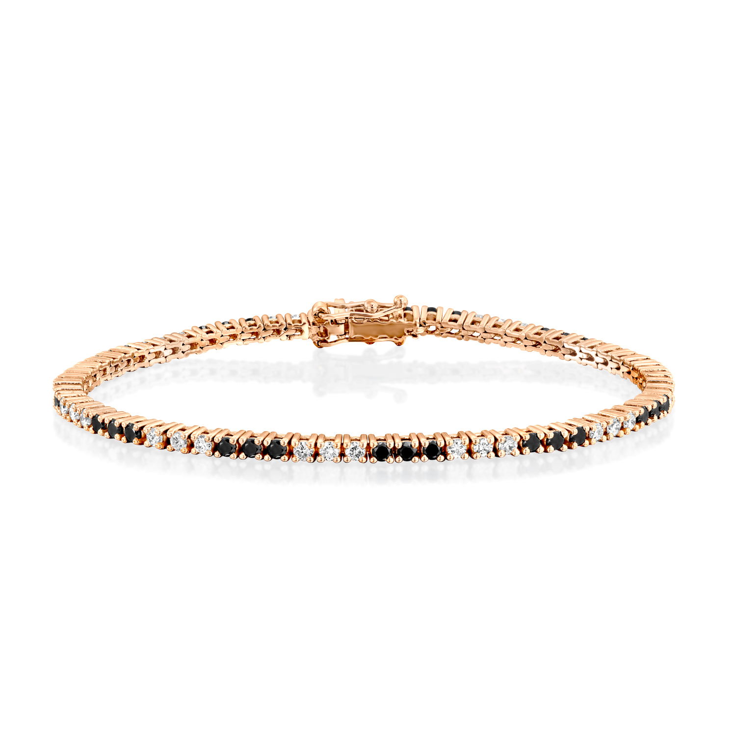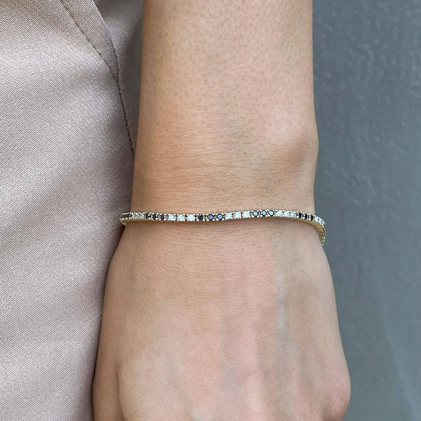 A special and delicate black and white diamond tennis bracelet set with 0.80 carat black diamonds in total and 0.84 carat white diamonds in total. A stylish tennis bracelet that creates a game between black and white and gives the bracelet a unique and eye-catching look.