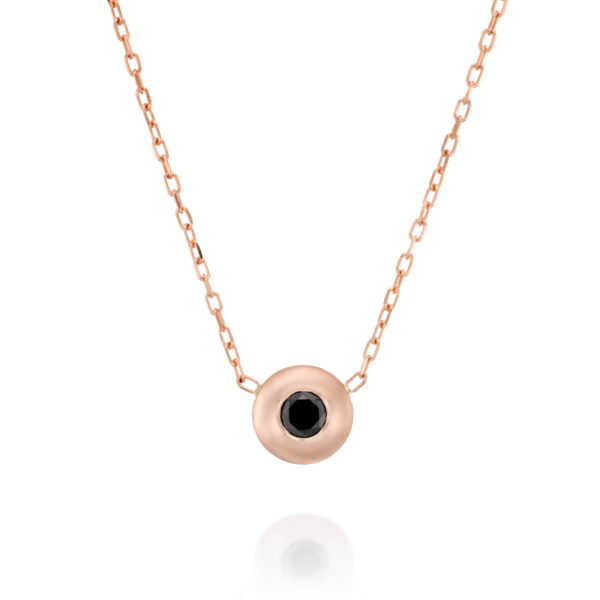 A fashionable and delicate black diamond necklace set with a 0.20ct black diamond. A diamond pendant with a smooth, round donut appearance that adds a refined presence to the overall look of the jewelry.