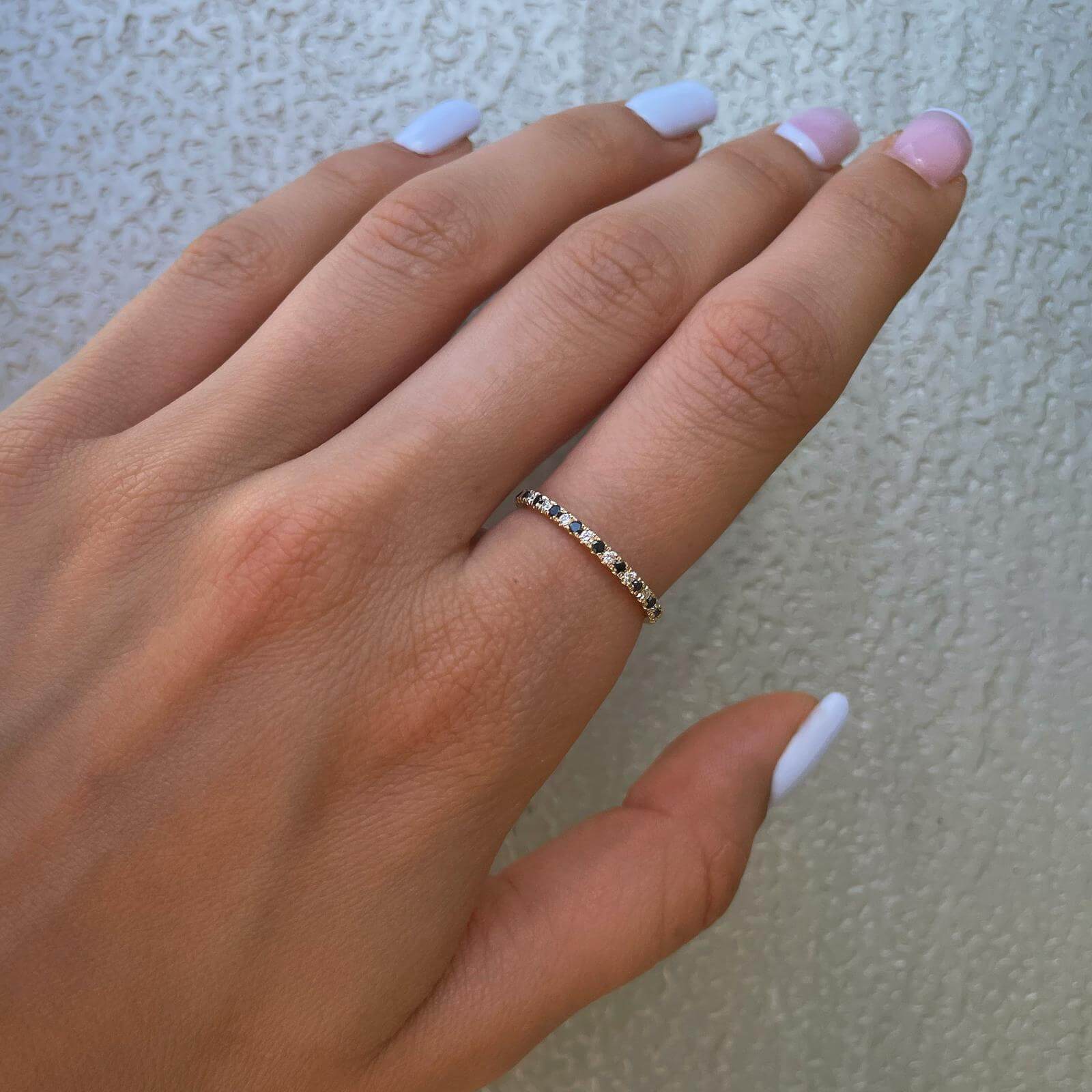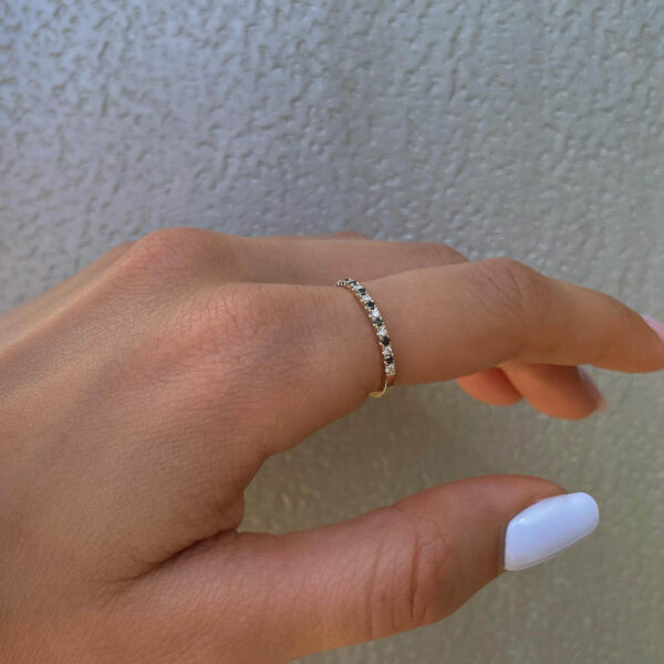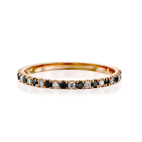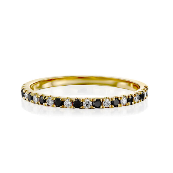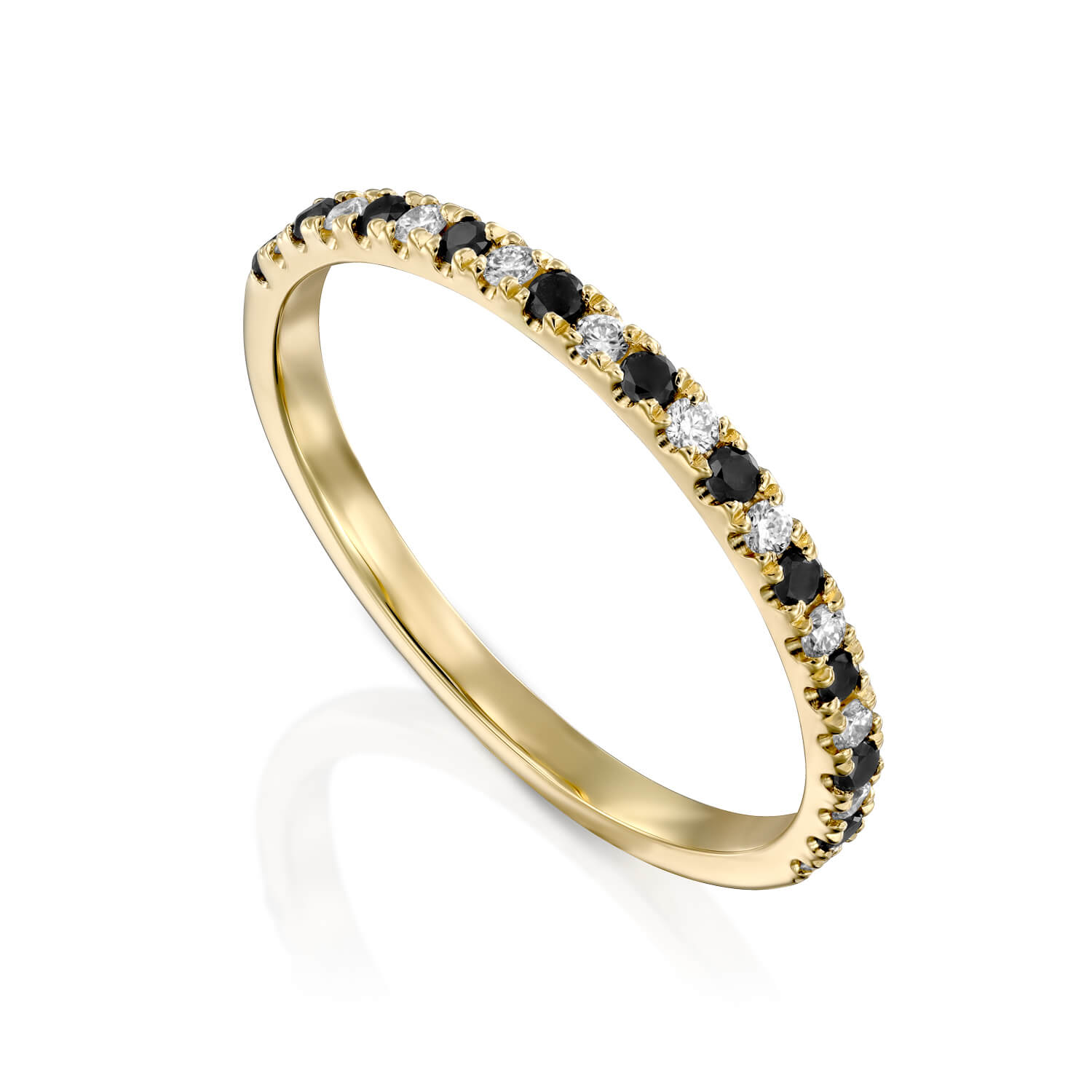 A black and white diamond ring set in a row with a delicate and special look. A diamond ring set with 11 black diamonds weighing 0.11 carat in total and 11 white diamonds weighing 0.11 carats in total. A row of diamond rings that are perfect as a special and sparkling addition to everyday or as an addition that is attached to an engagement ring.