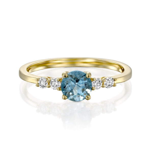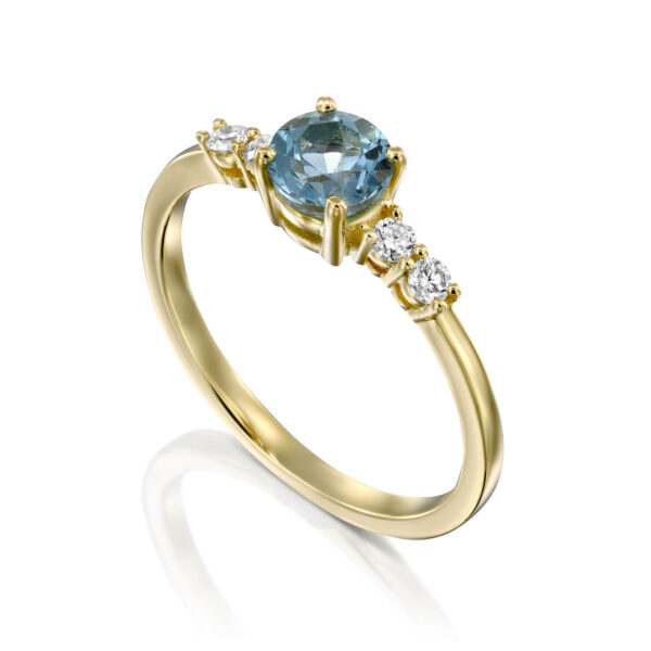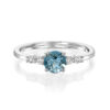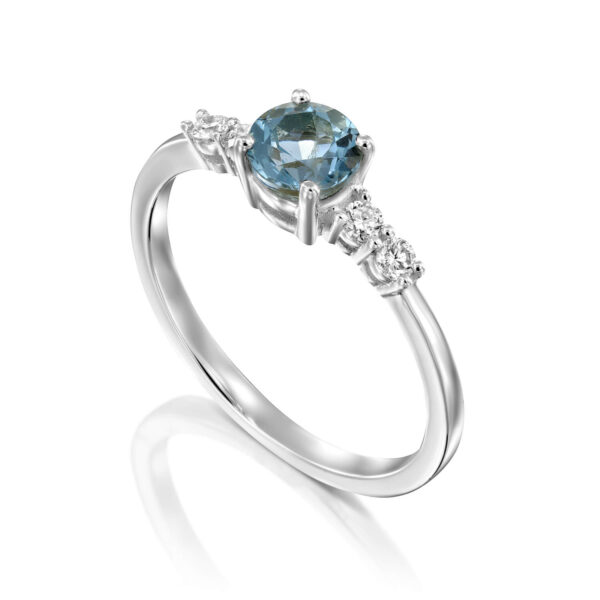 A blue topaz and diamond engagement ring. alternative engagement ring with a beautiful round blue topaz and dazzling diamonds.