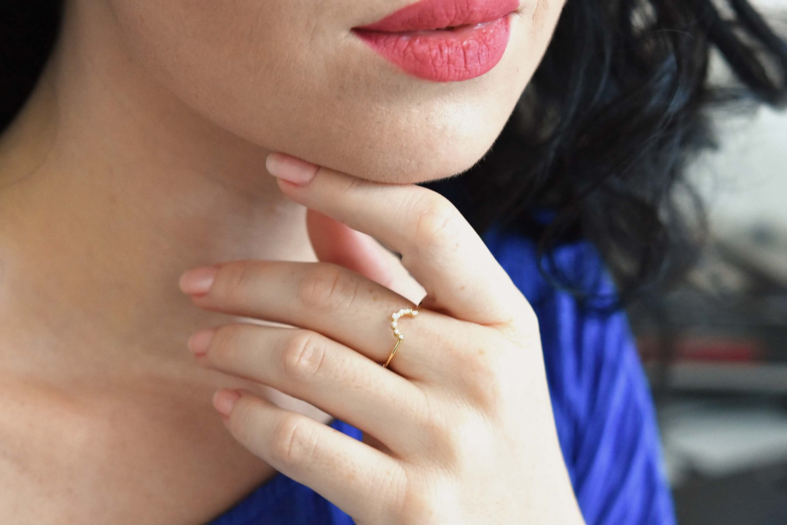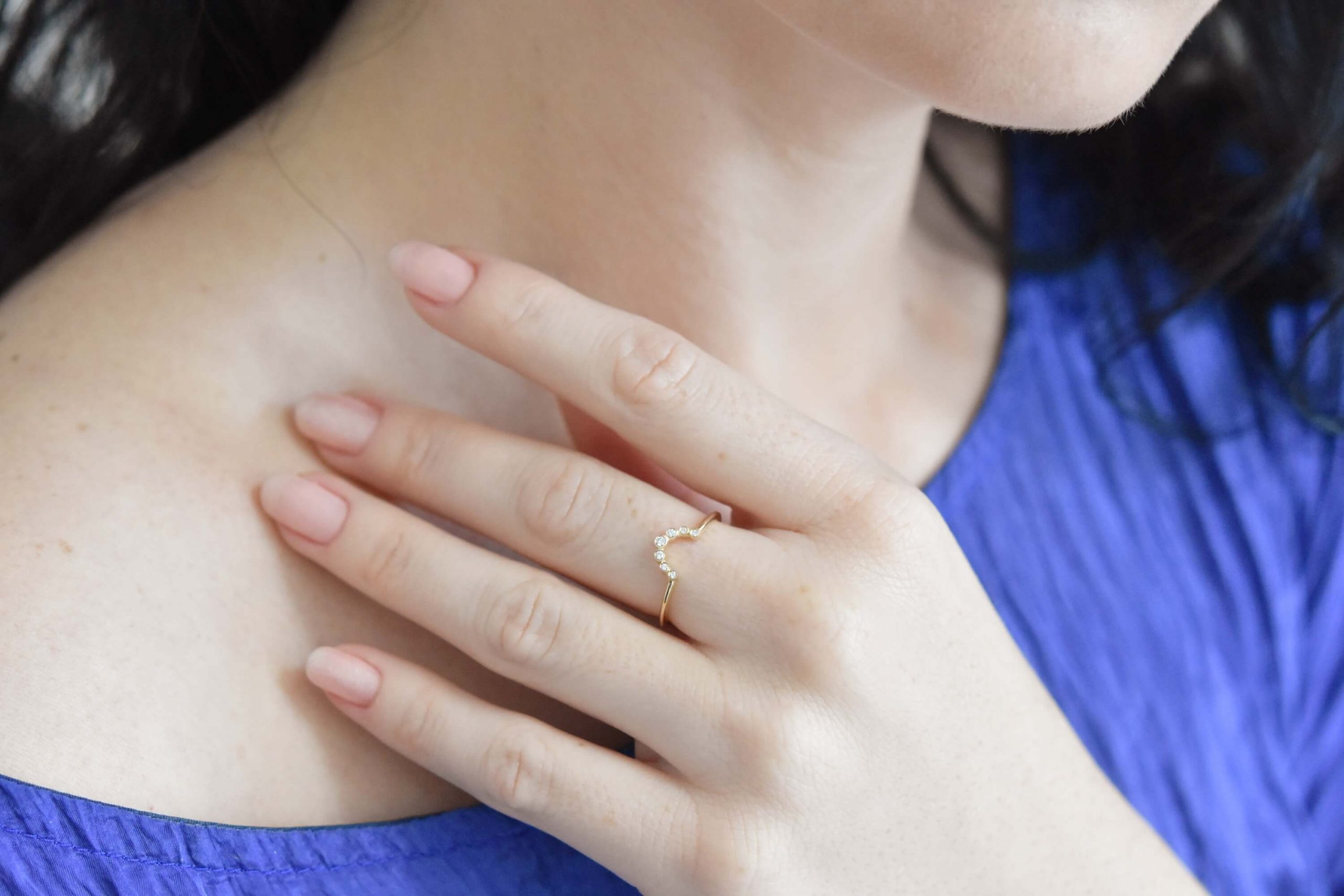 Nesting diamond wedding ring. A beautiful delicate wedding ring that goes perfectly next to an engagement ring with high-quality diamonds