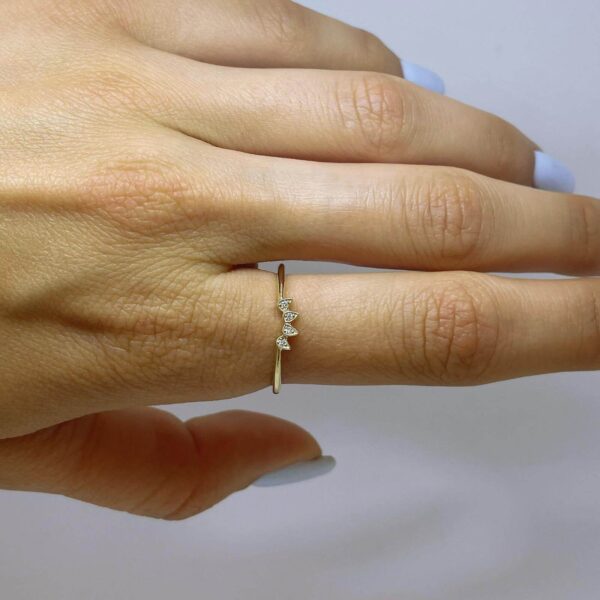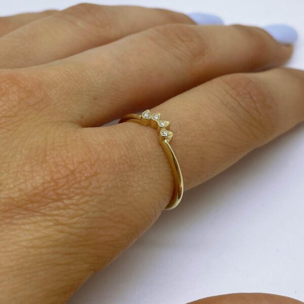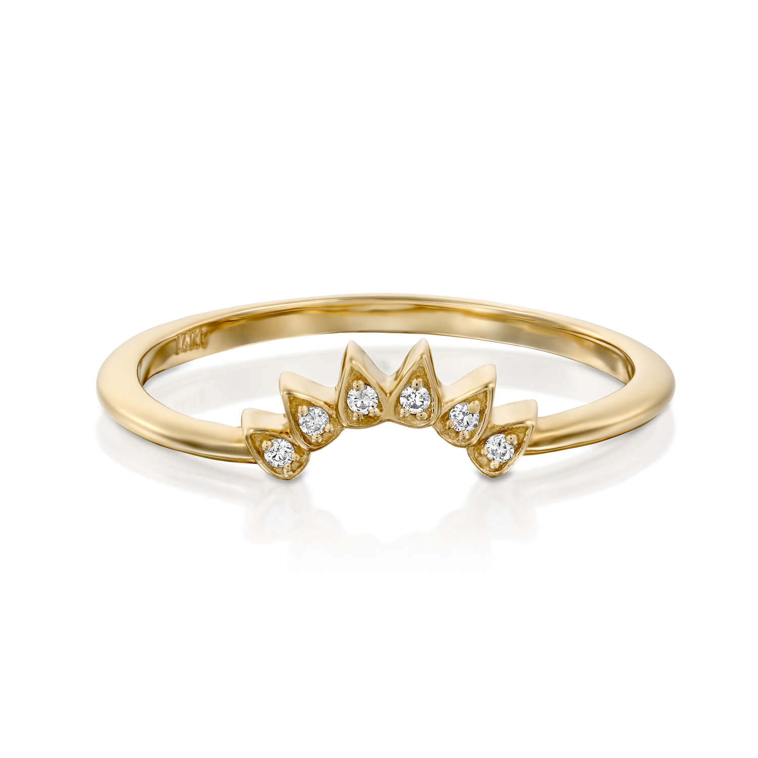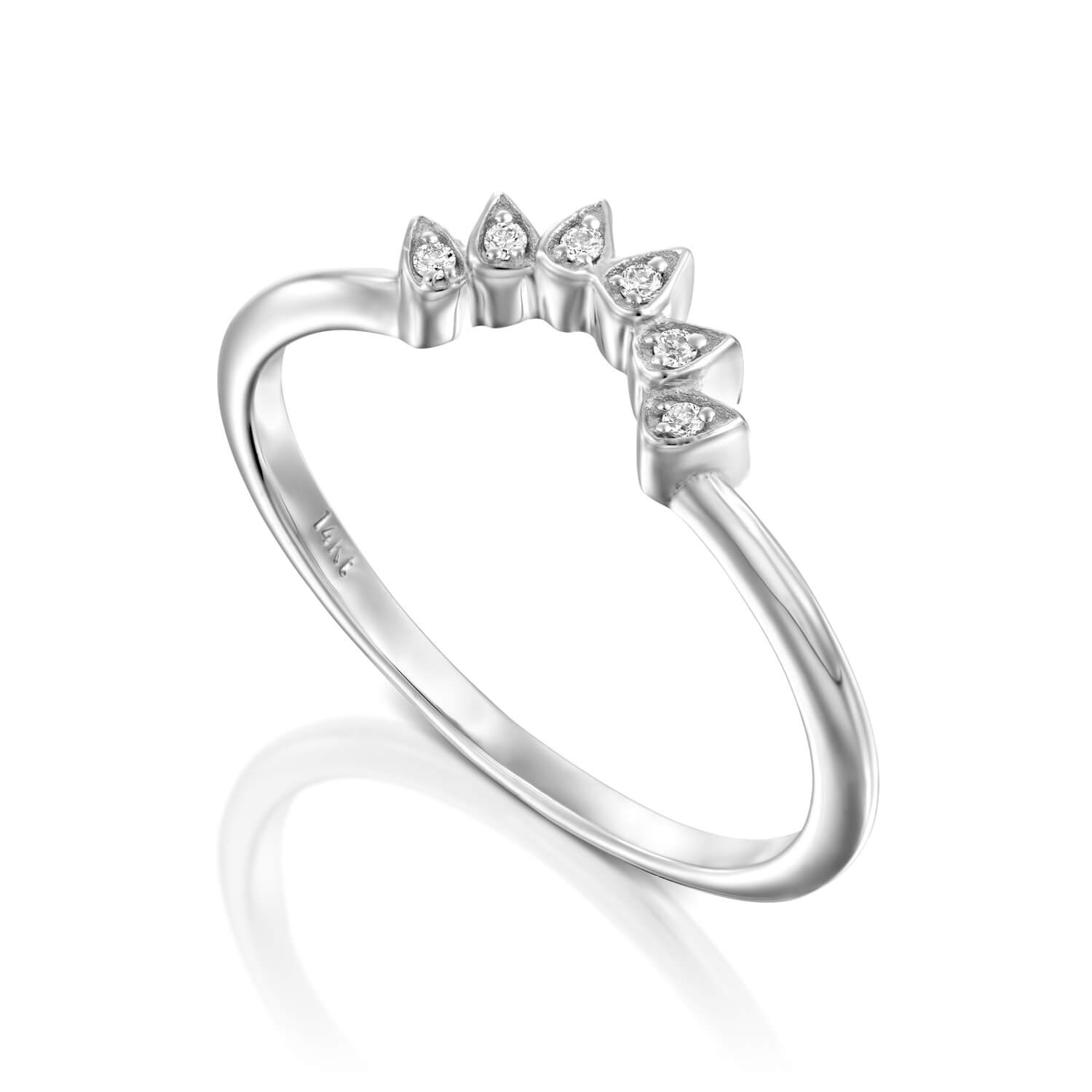 Curved Diamond Wedding Ring. Thin and unique design features diamonds in bezel set.