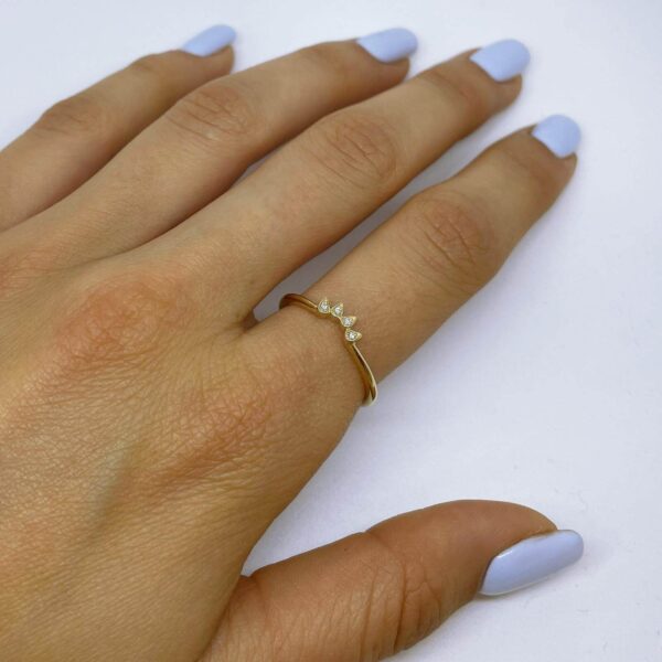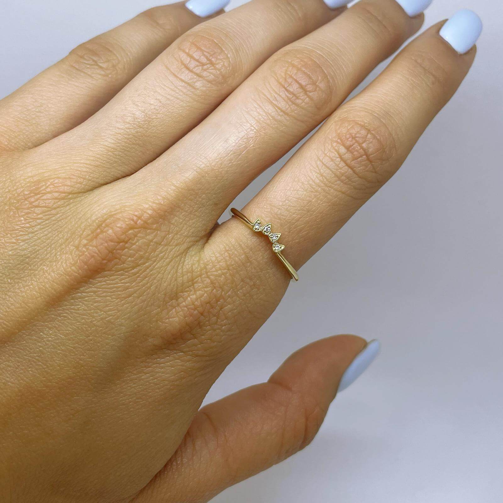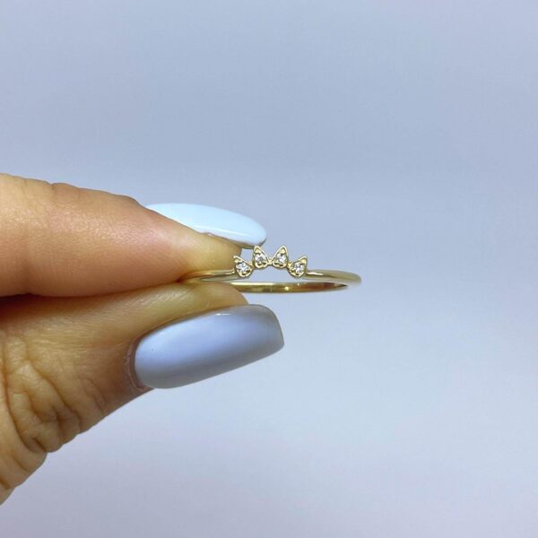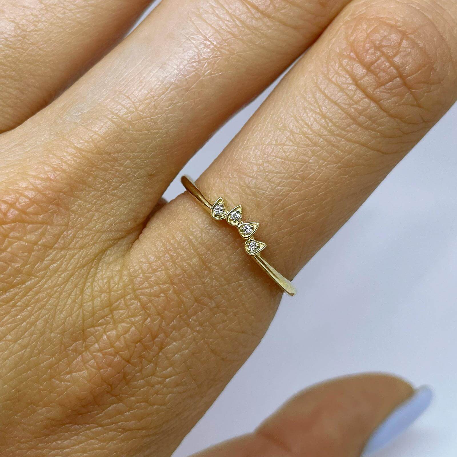 Curved Diamond Wedding Ring. Thin and unique design features diamonds in bezel set.