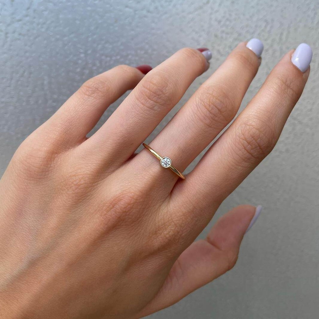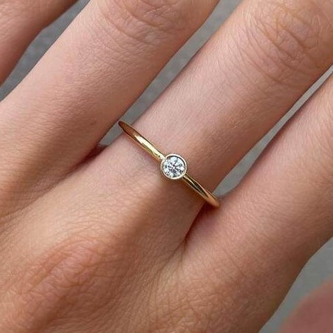 Dainty diamond ring. Thin and simple design with a high-quality dazzling round diamond.