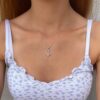 Stylish gold pendant set with sparkling white diamond and white. A diamond pendant with a refined presence glides elegantly on the neckline.