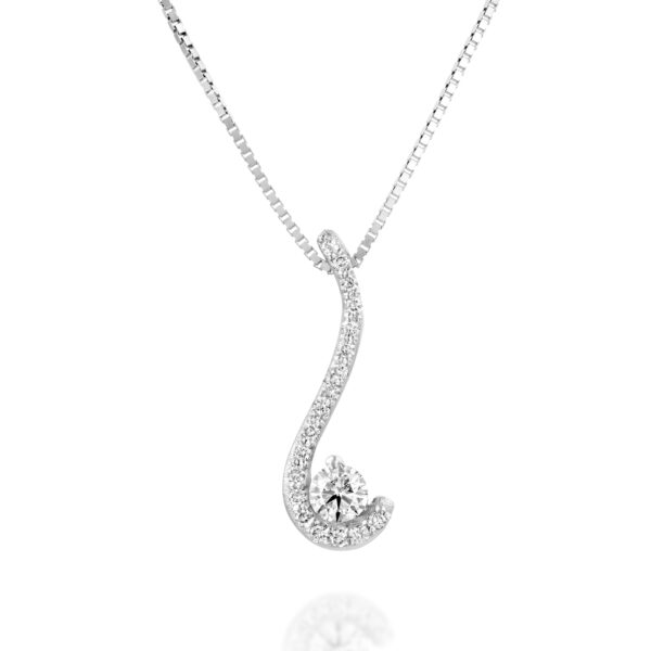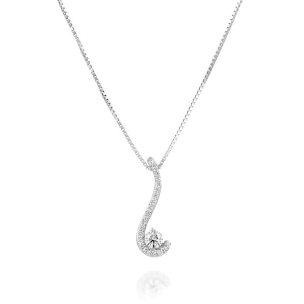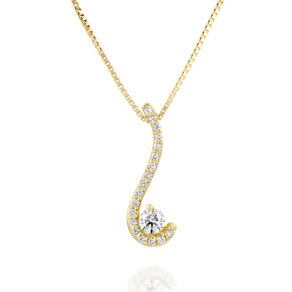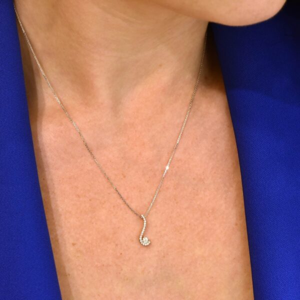 Trendy and delicate diamond branch pendant set with a 0.10ct center diamond and small diamonds set along the branch weighing 0.07ct total. A diamond pendant with a refined and glittering presence.