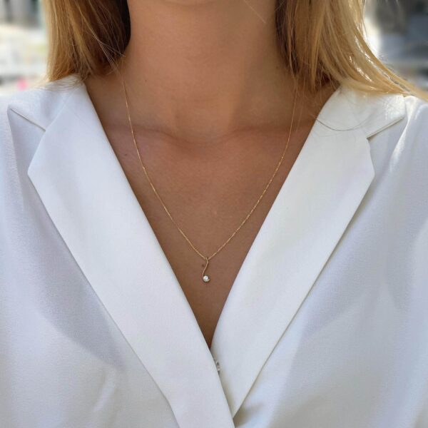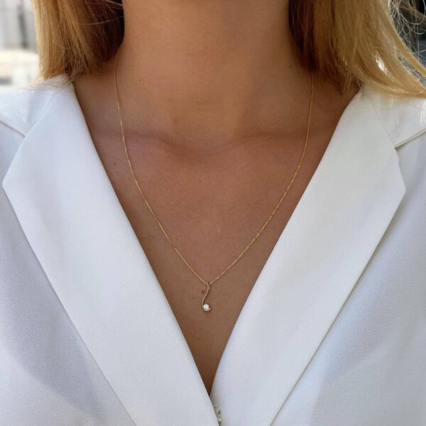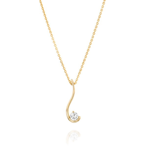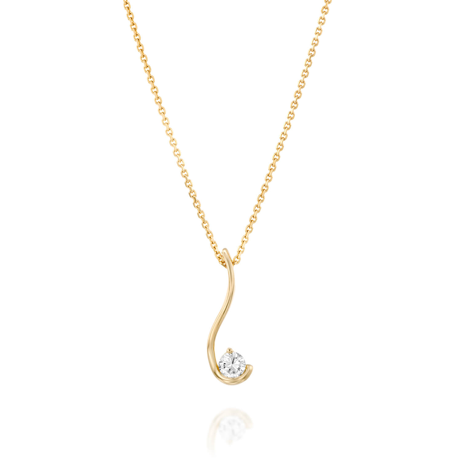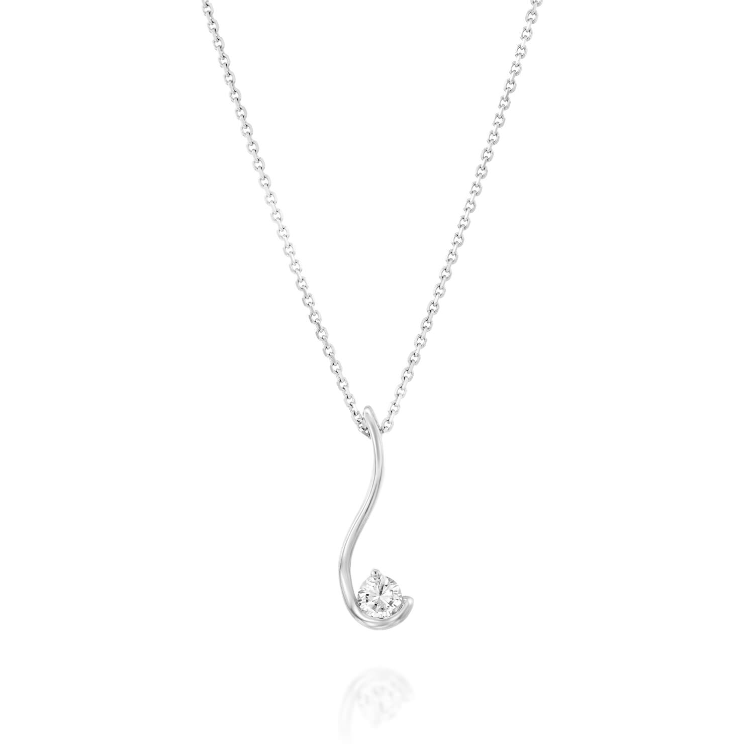 A fashionable and trendy diamond pendant on a branch set with a 0.10ct diamond. A diamond pendant with a refined presence glides over the neckline in an elegant manner.