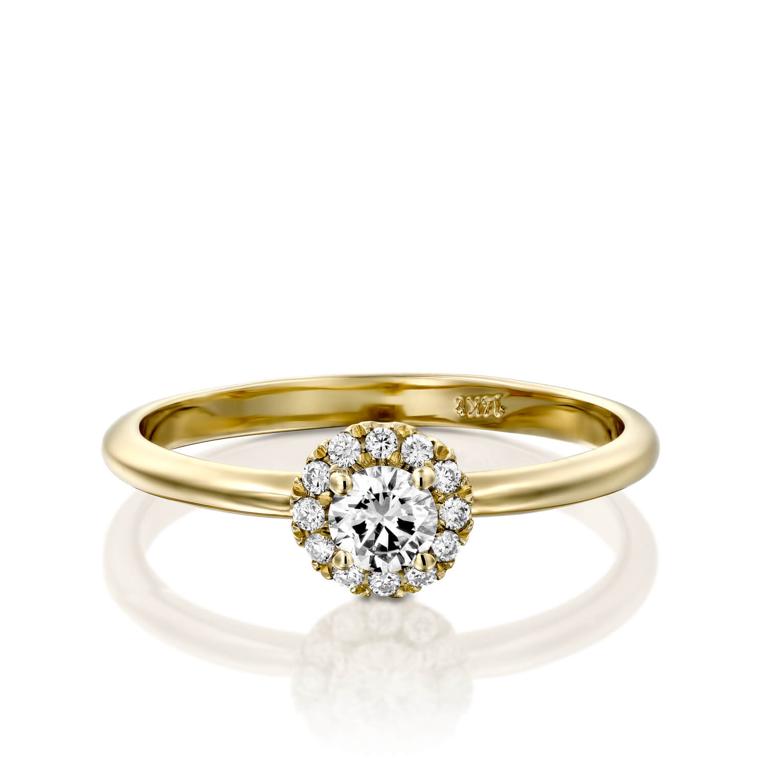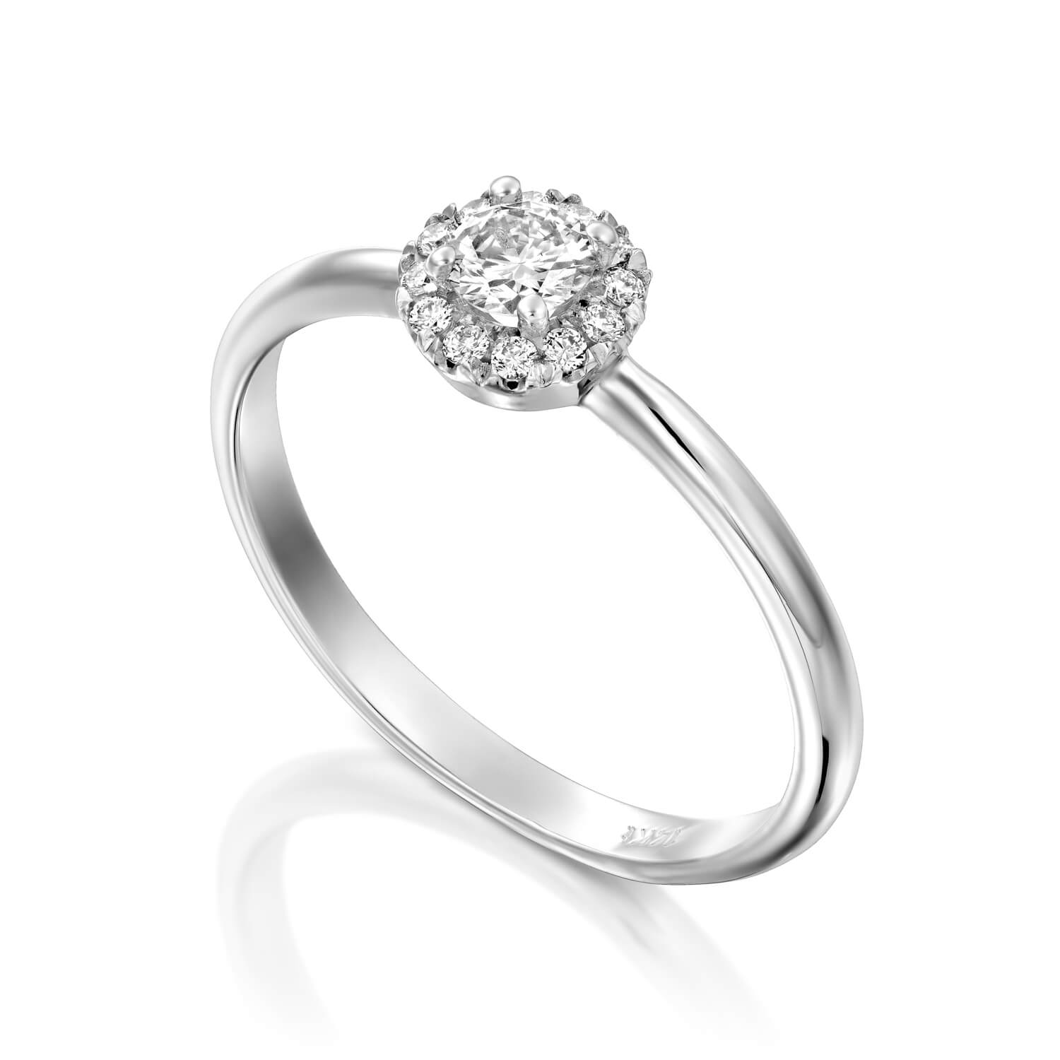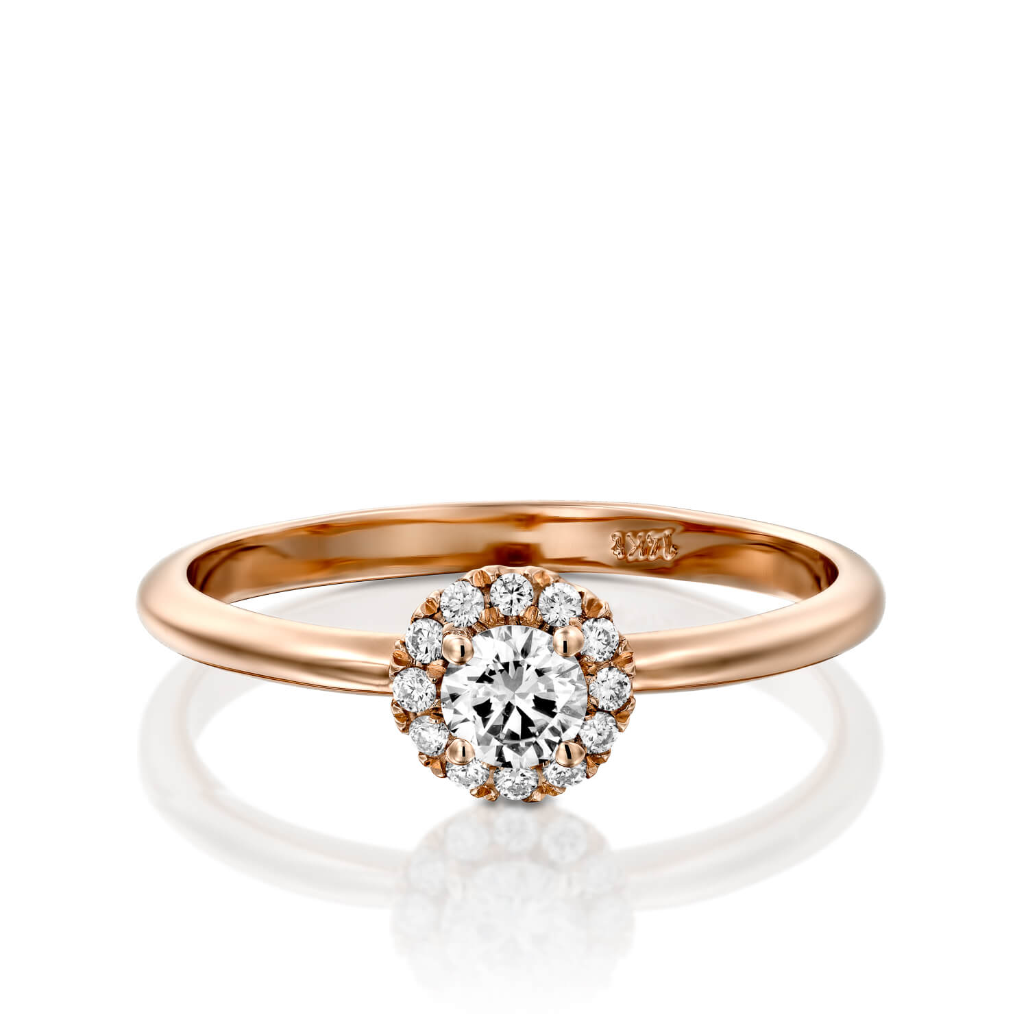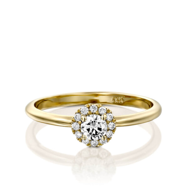 This elegant halo diamond ring features one brilliant diamond in the center surrounded by twelve collection diamonds.