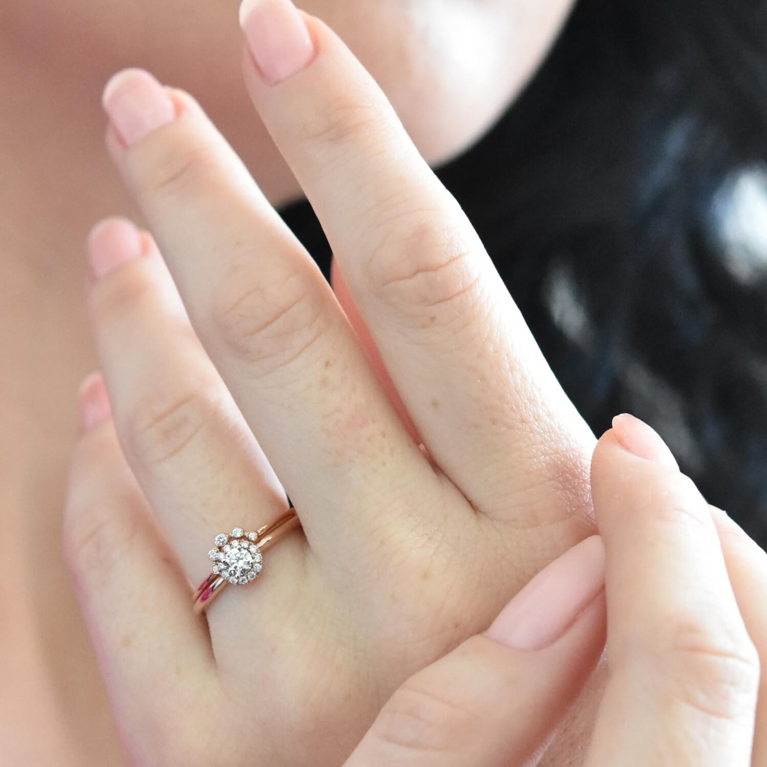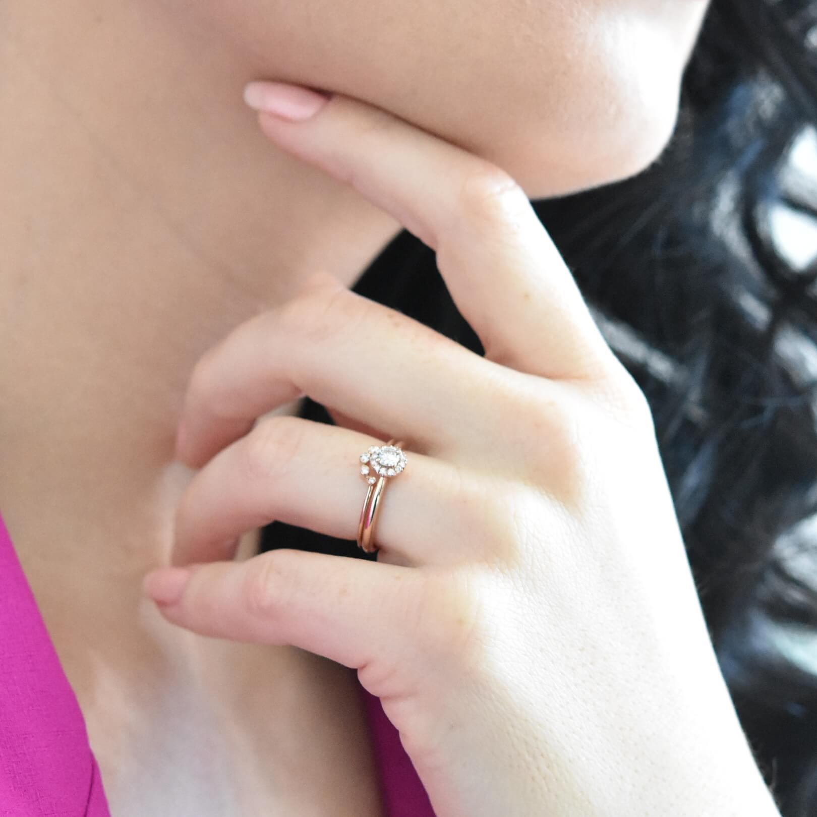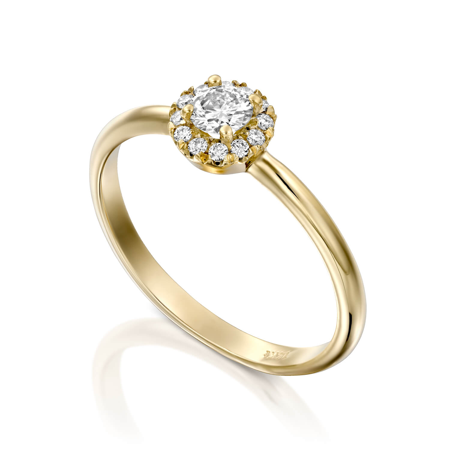 This elegant halo diamond ring features one brilliant diamond in the center surrounded by twelve collection diamonds.