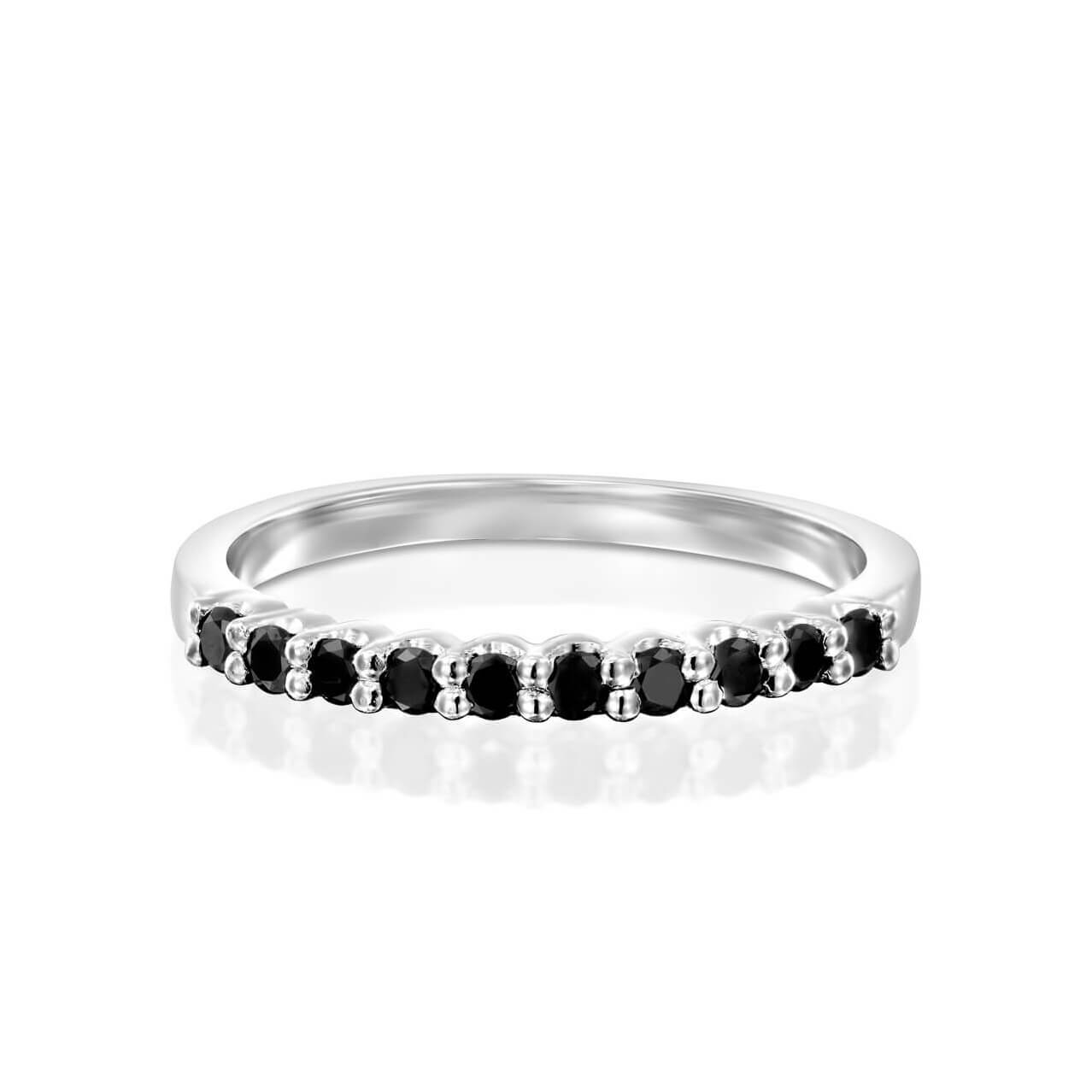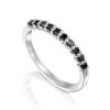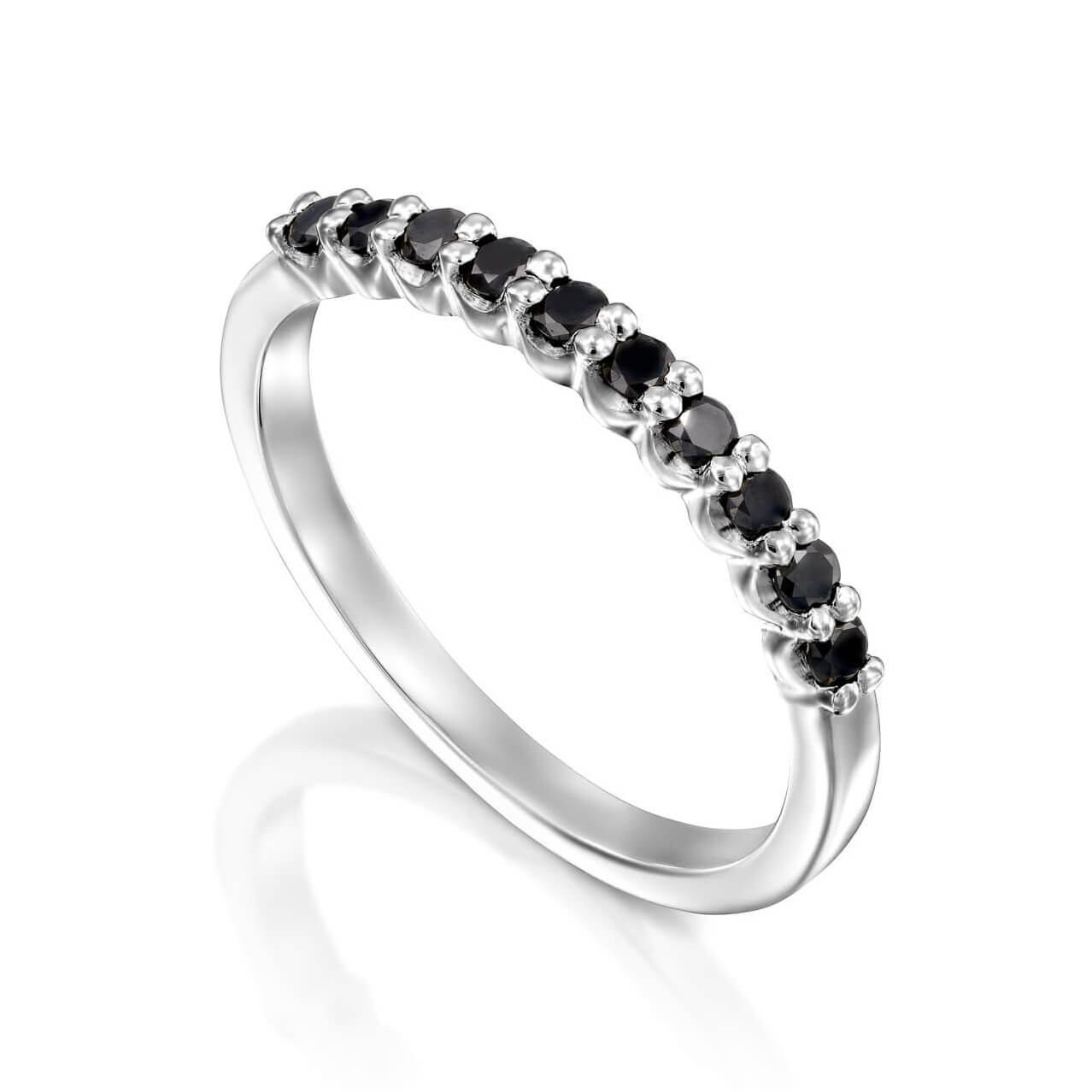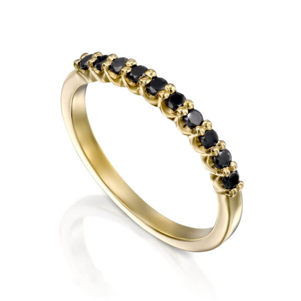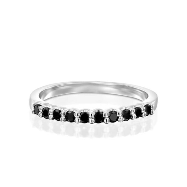 A fine row of black diamonds set with 10 black diamonds weighing 0.20 carats in total. A diamond ring adorned with small inverted arches that can be seen from the side.