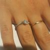 A slightly different and stylish diamond ring features with a 0.30 carat round brilliant diamond. A delicate and graceful engagement ring designed as two thin rings that twist and connect with each other.