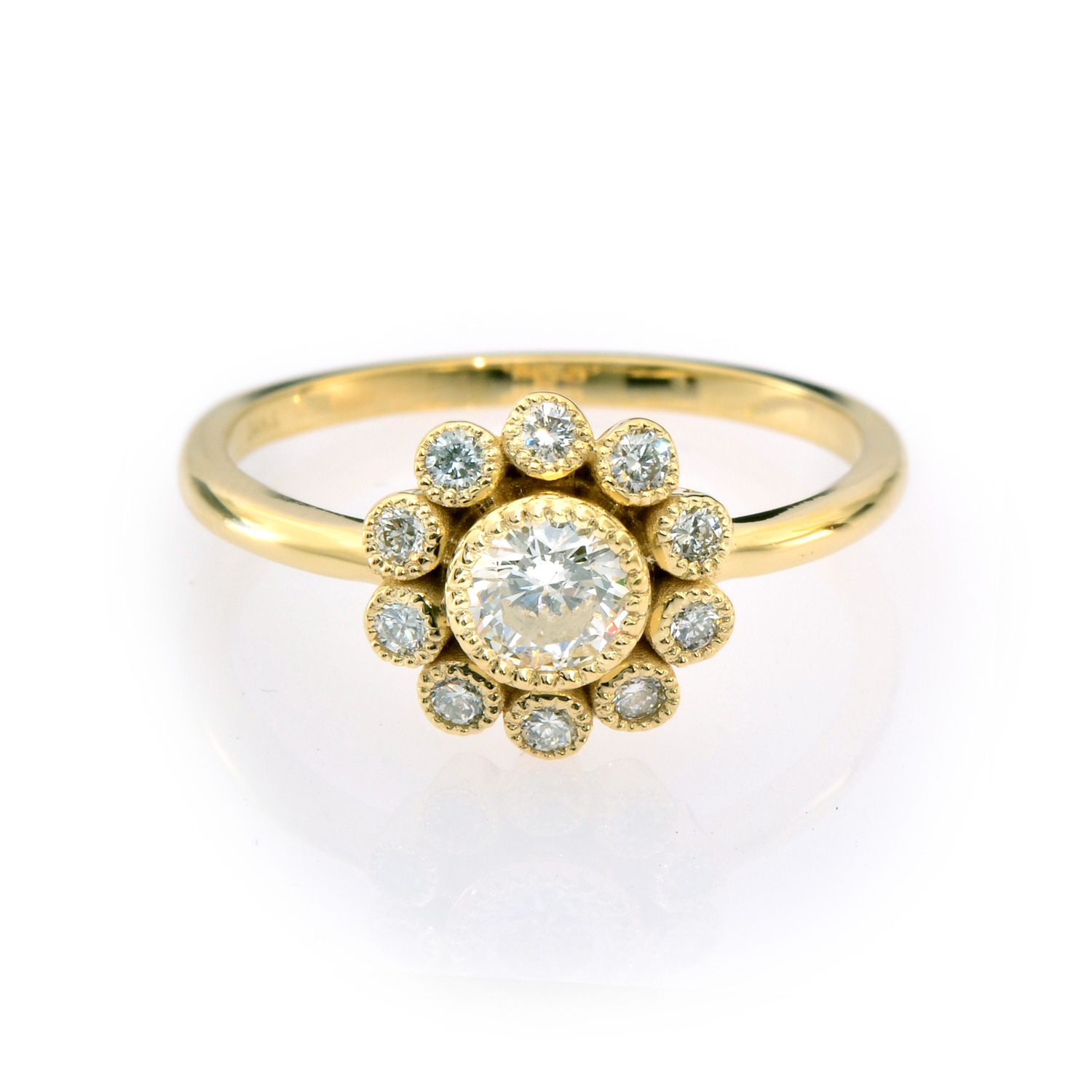Diamond engagement ring like a flower. Alternative vintage style engagement ring for a gentle spirit
