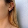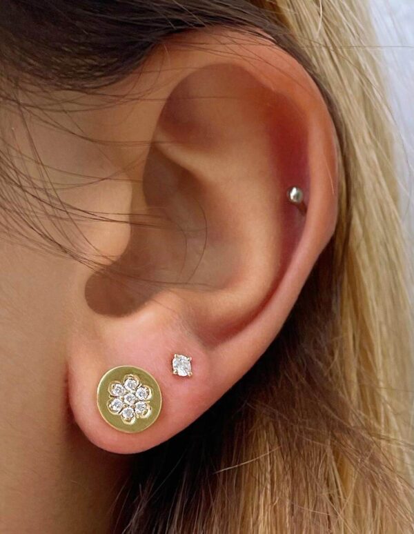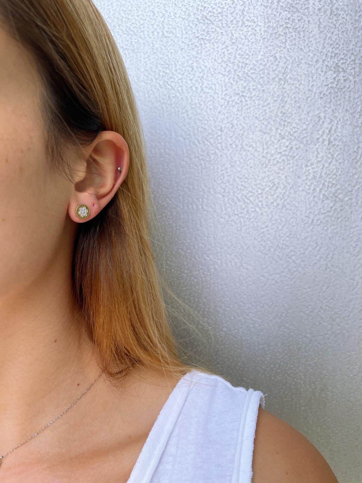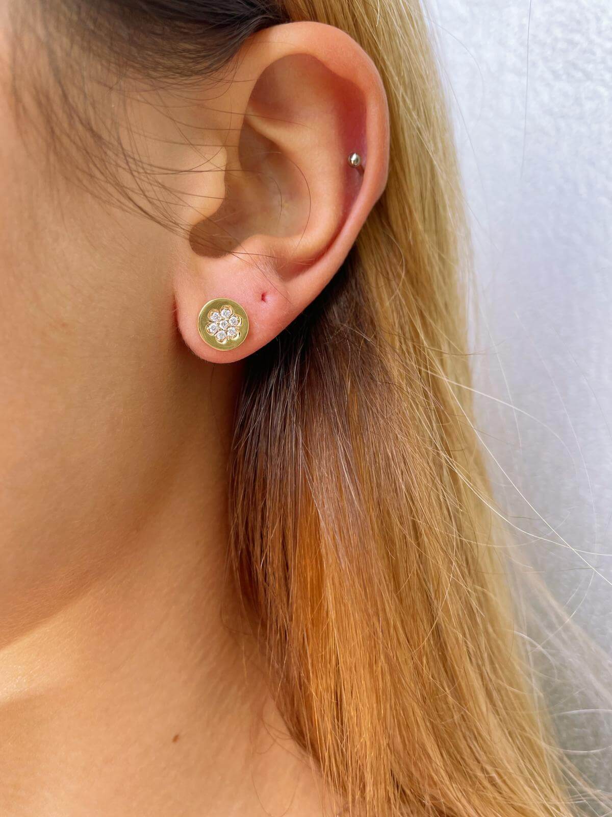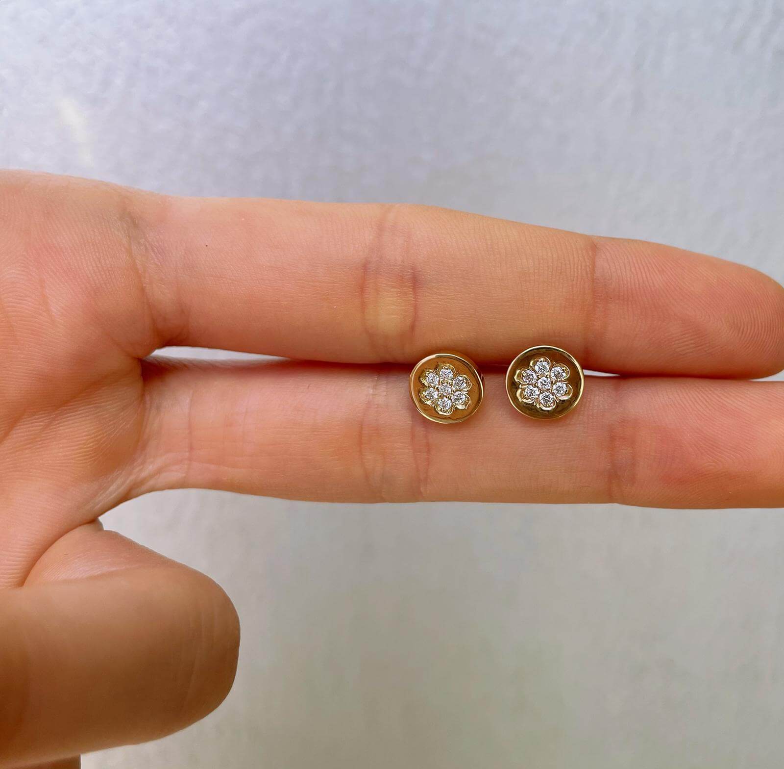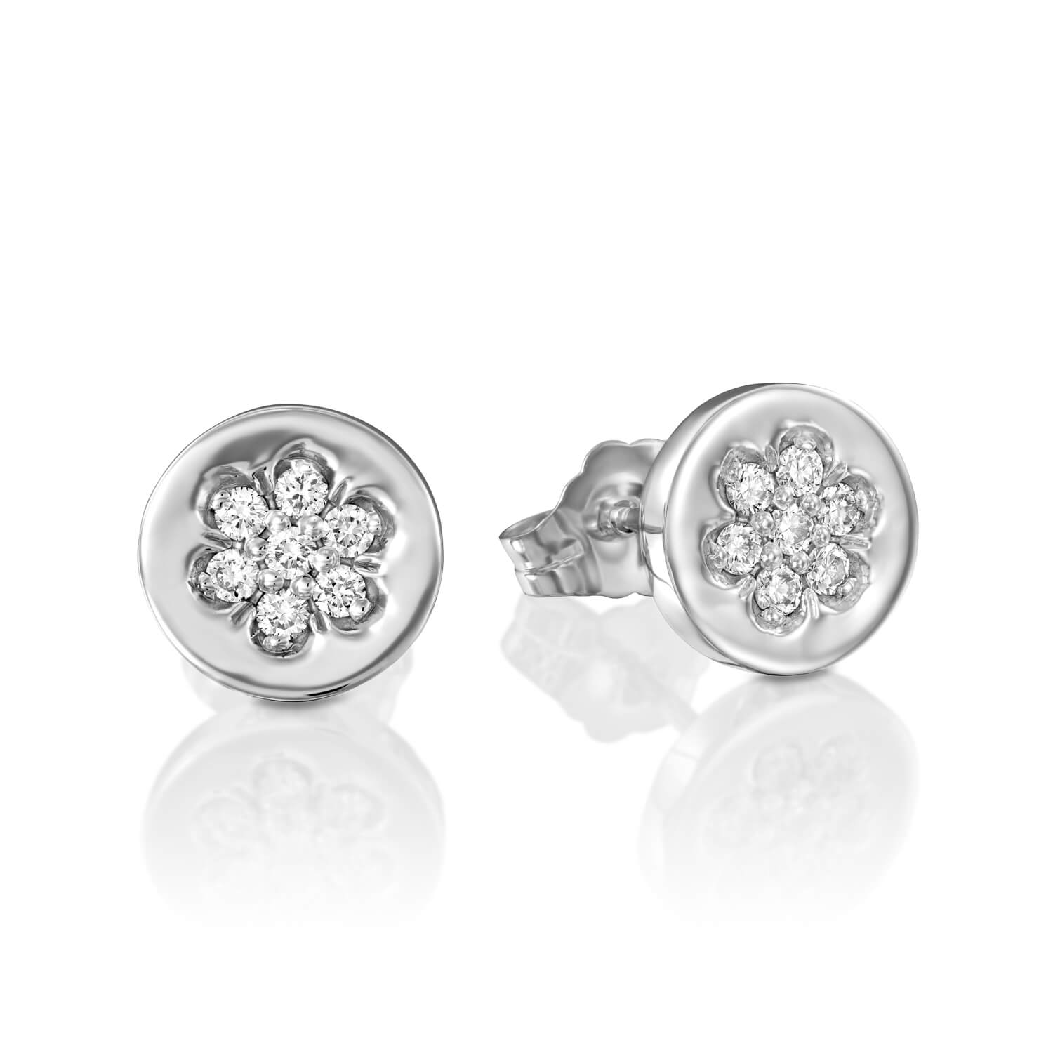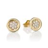 Flower Diamond Gold Earrings. Elegant stylish design with high quality diamonds designed as a delicate flower on a solid gold round earrings. Sparkling earrings for every occasion. Perfect choice as a gift for a birthday or for an anniversary.