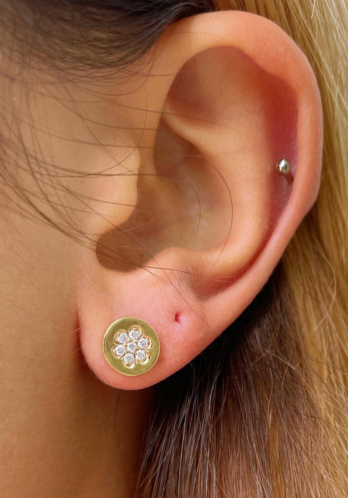 Diamond Flower Gold Earrings - nature shiny
