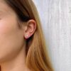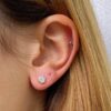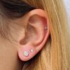Diamond flower stud earrings. Diamond stud earrings with invisible prongs between the diamond, that make it look like one big diamond.