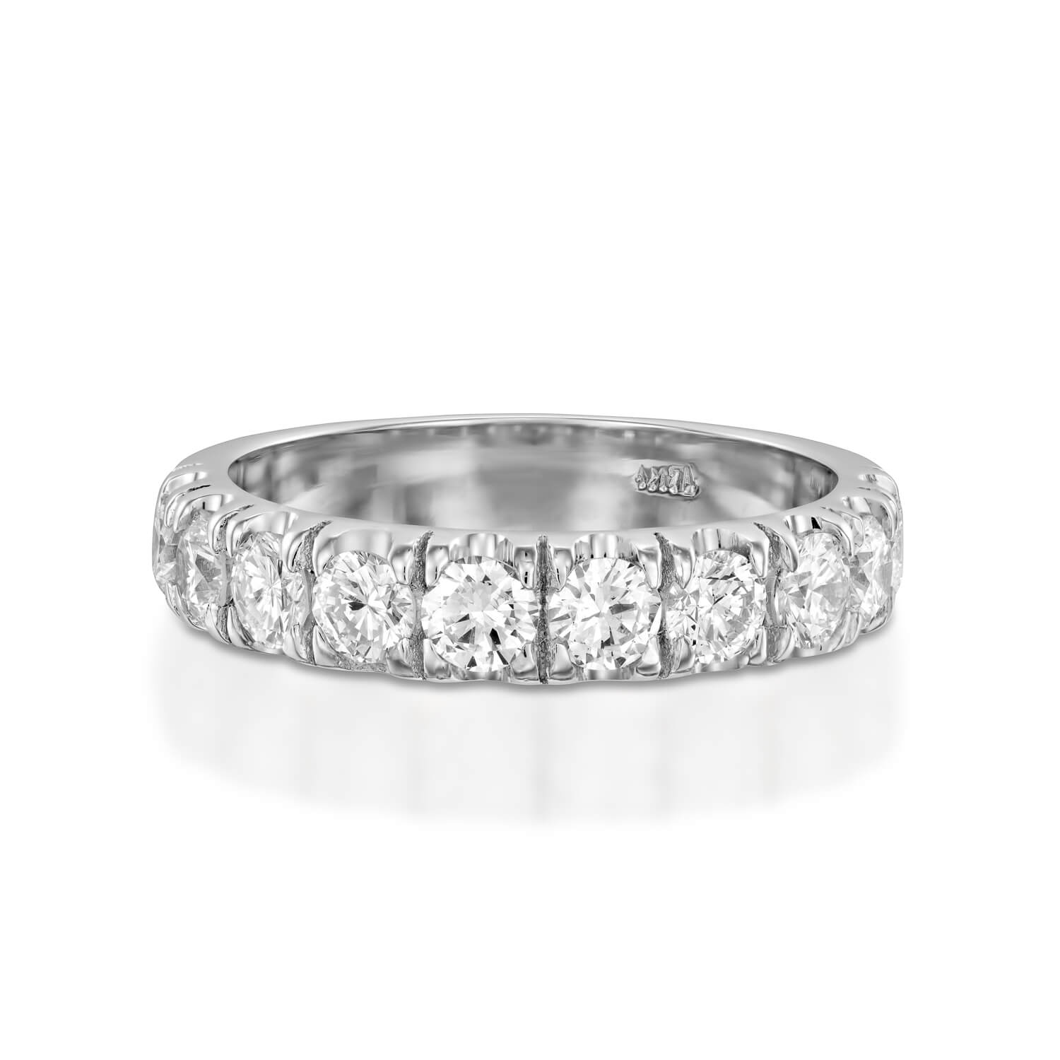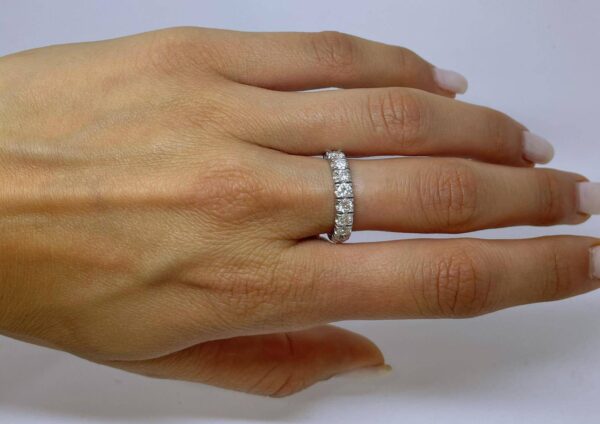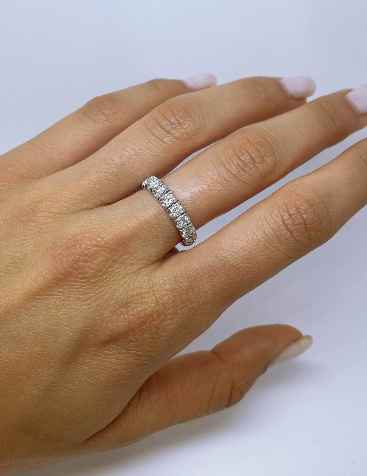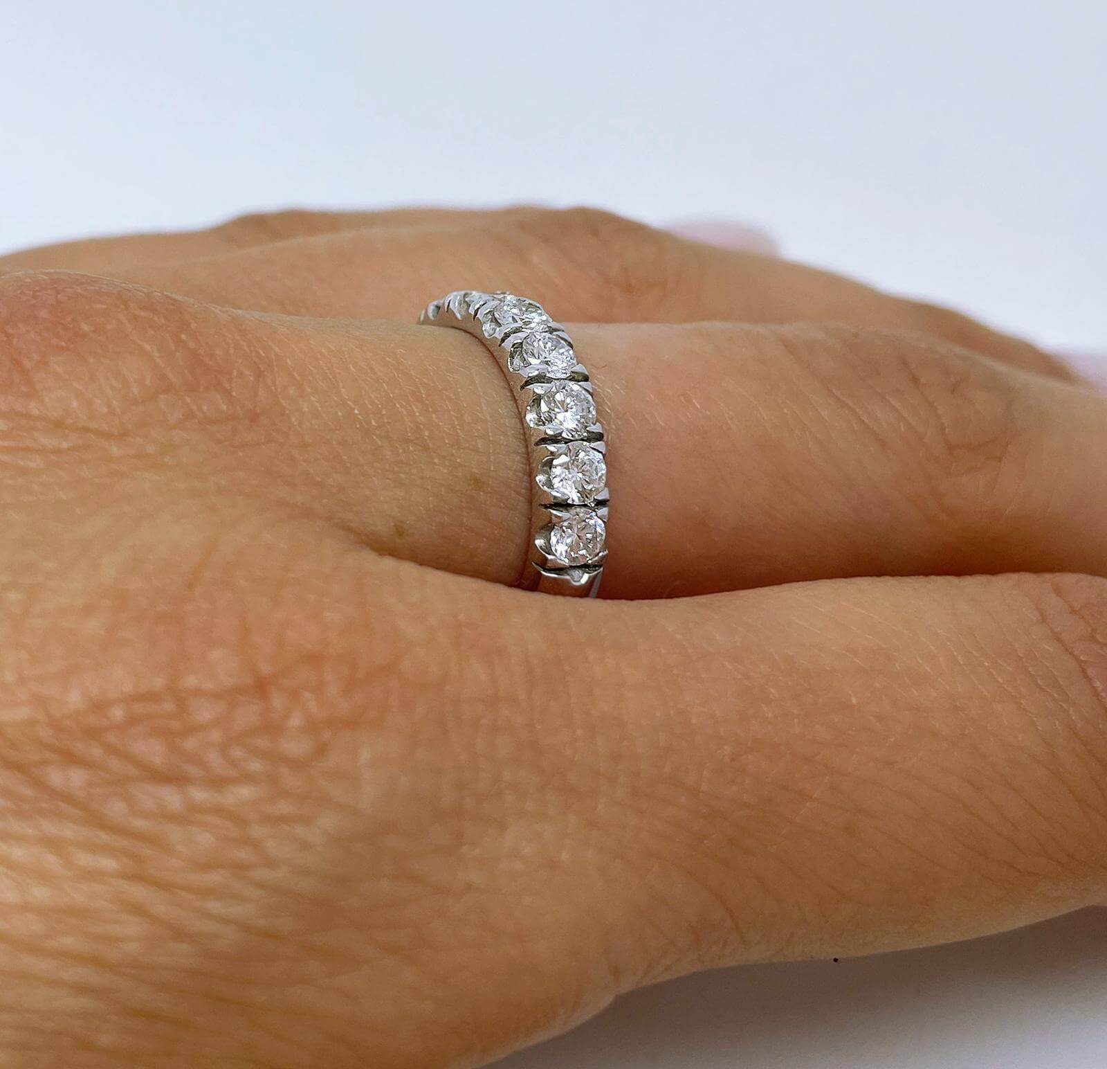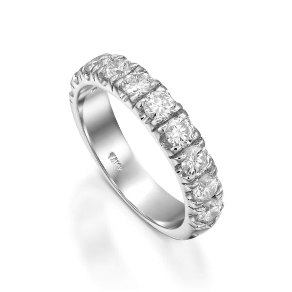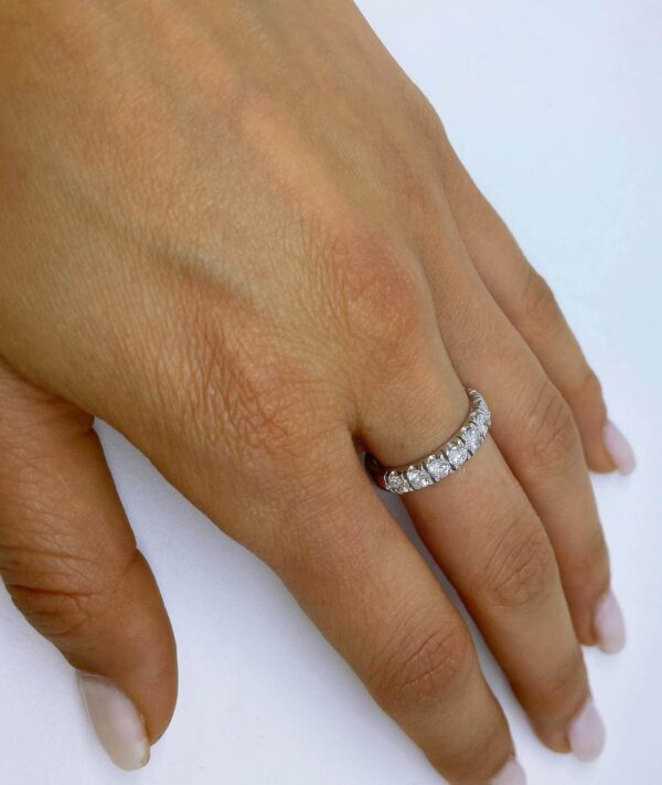 Elegant and impressive half eternity ring set with 10 sparkling diamonds each weight 0.10carats, total weight 1.00 carats.