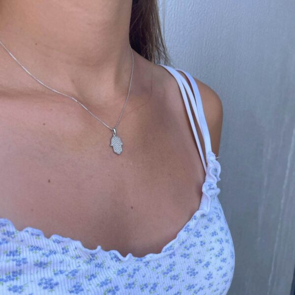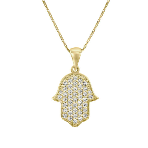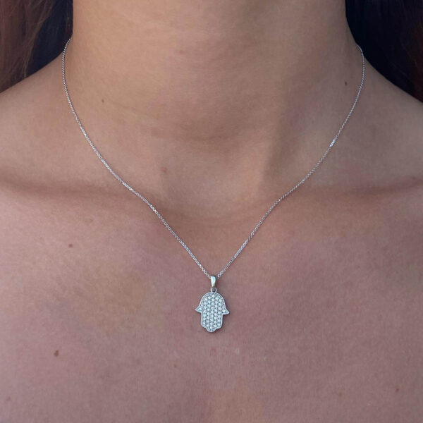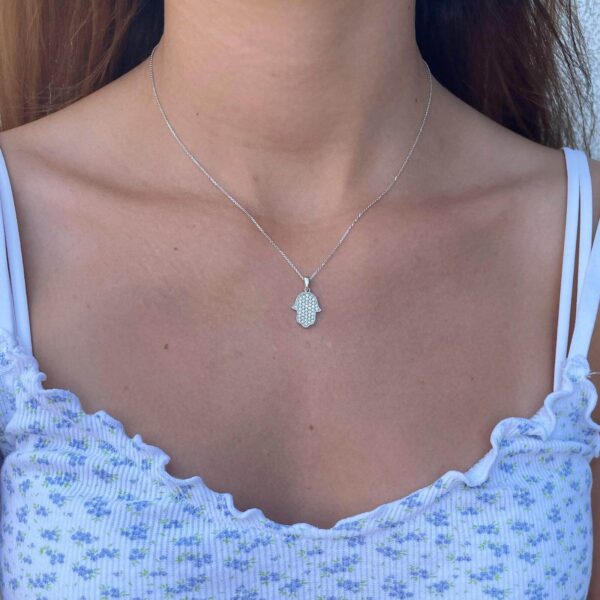 The Hamsa is a palm-shaped amulet popular throughout the Middle East and North Africa and commonly used in jewelry. Depicting the open right hand, an image recognized and used as a sign of protection in many times throughout history.
