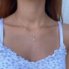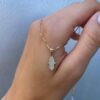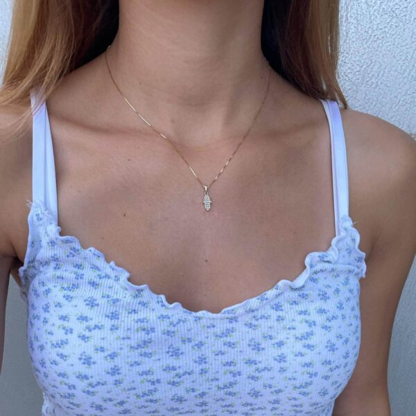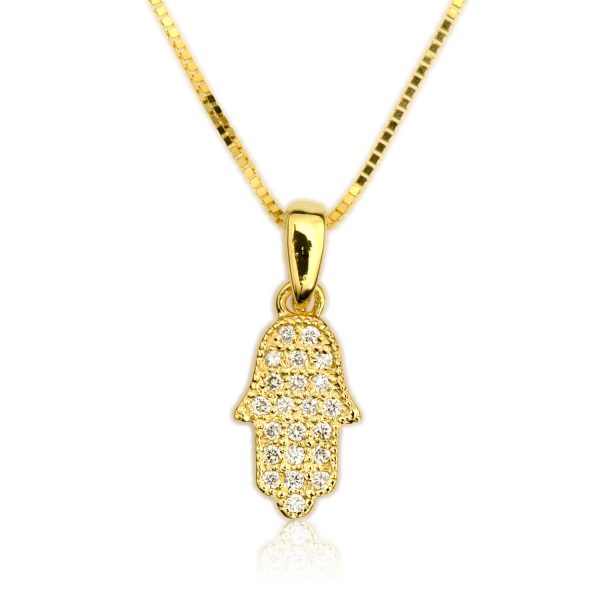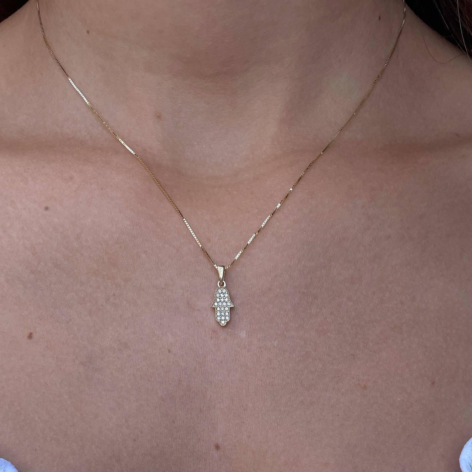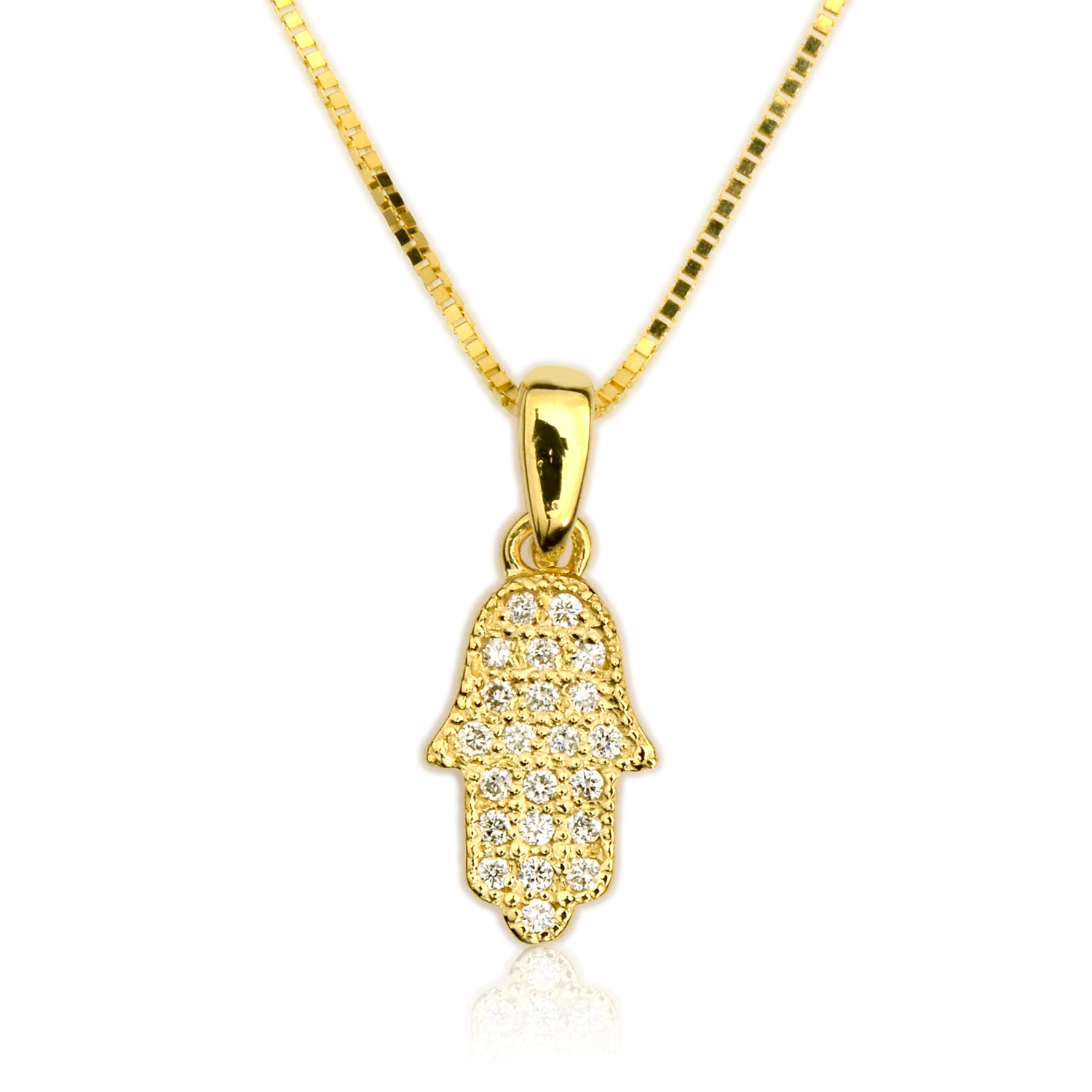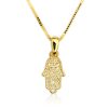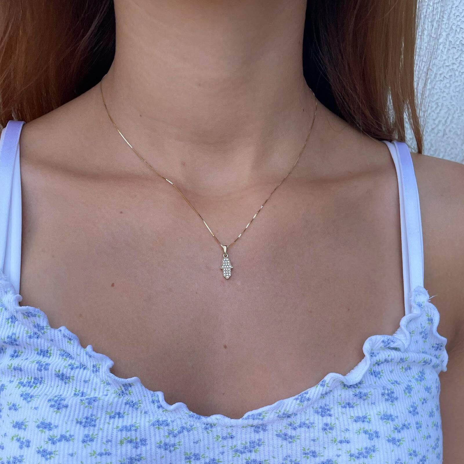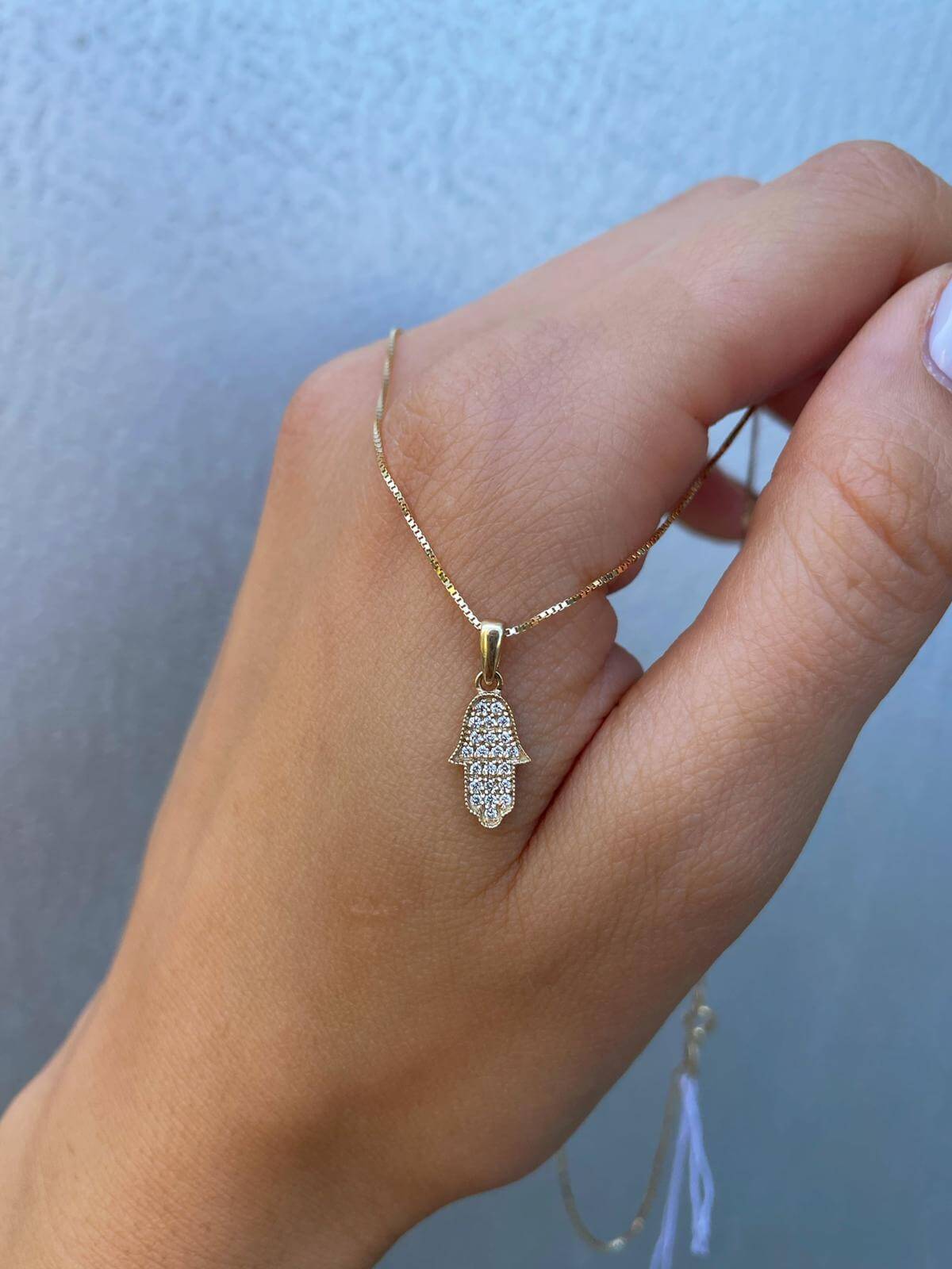 Diamond Hamsa pendant. Delicate hand shape design with milgrain finishing.