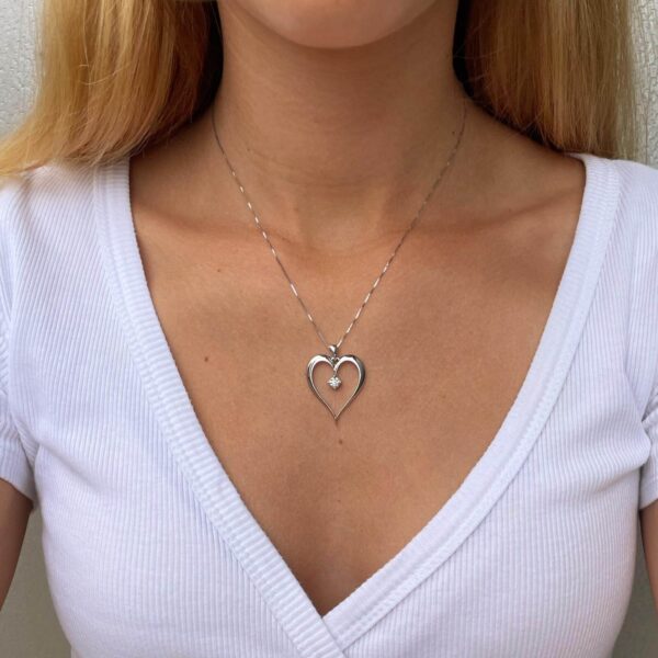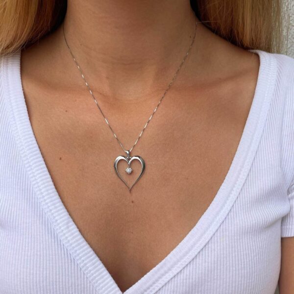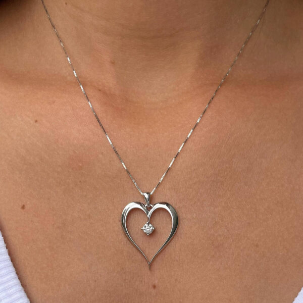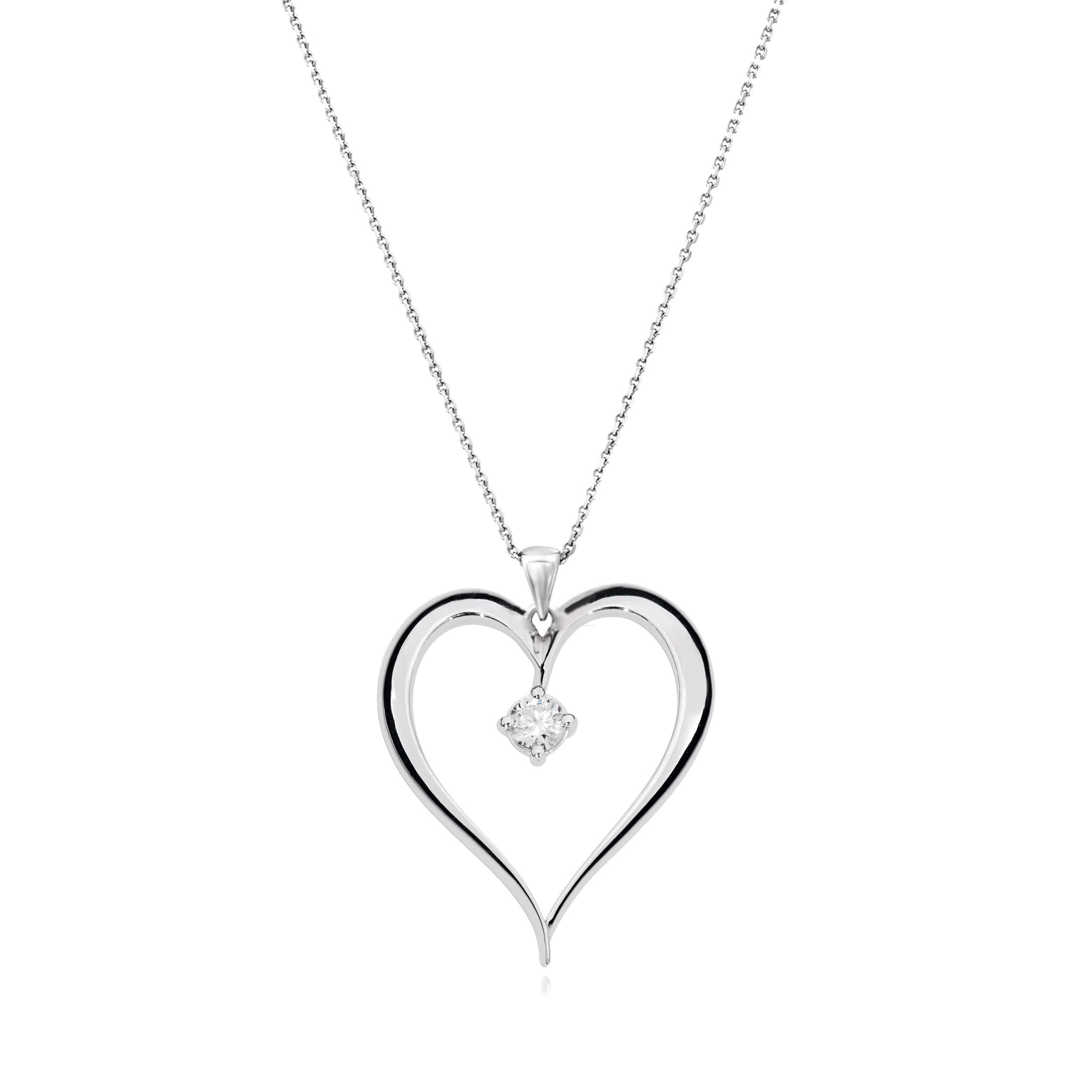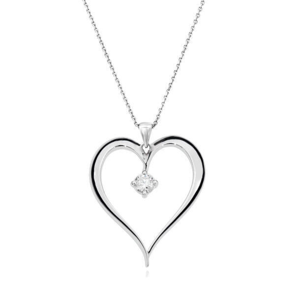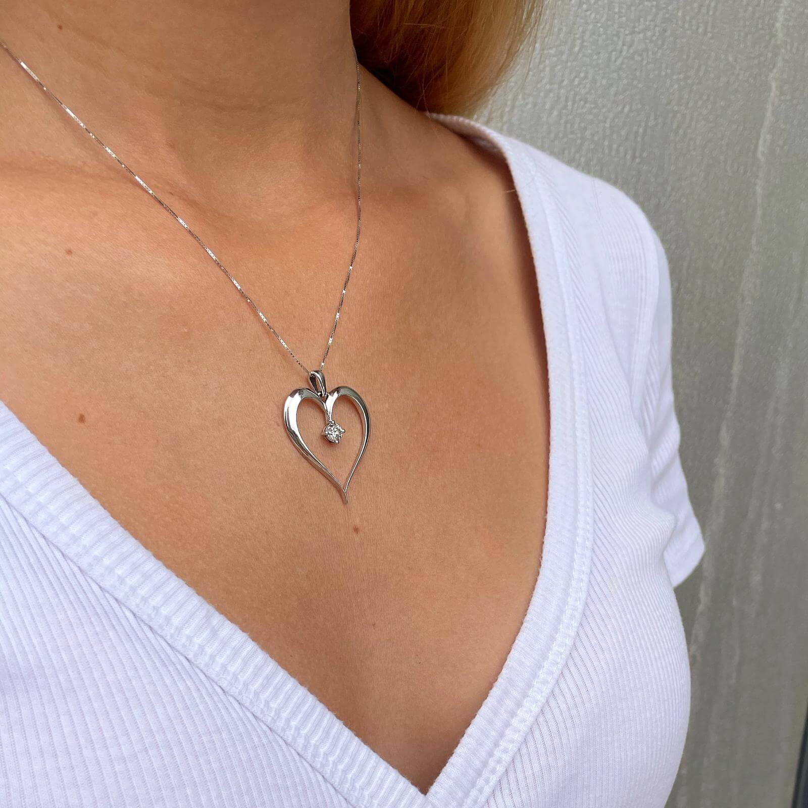 Diamond Heart Necklace. Smooth lines refined heart design with one sparkling diamond.