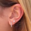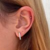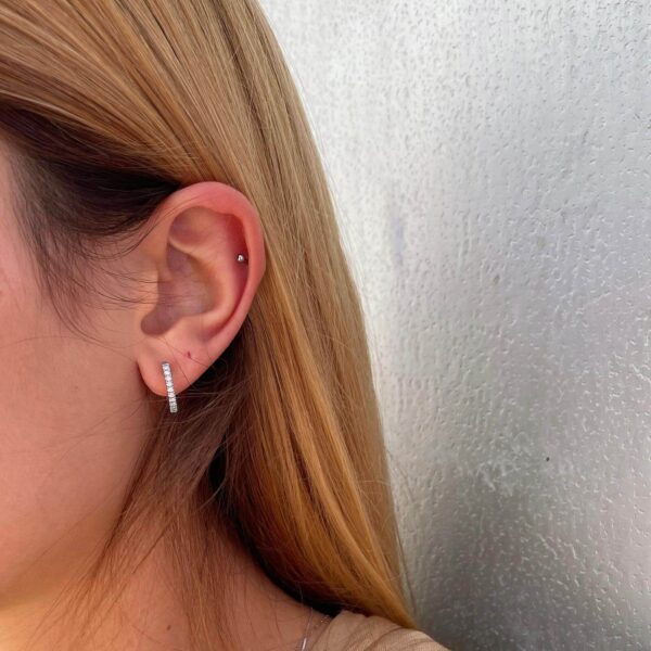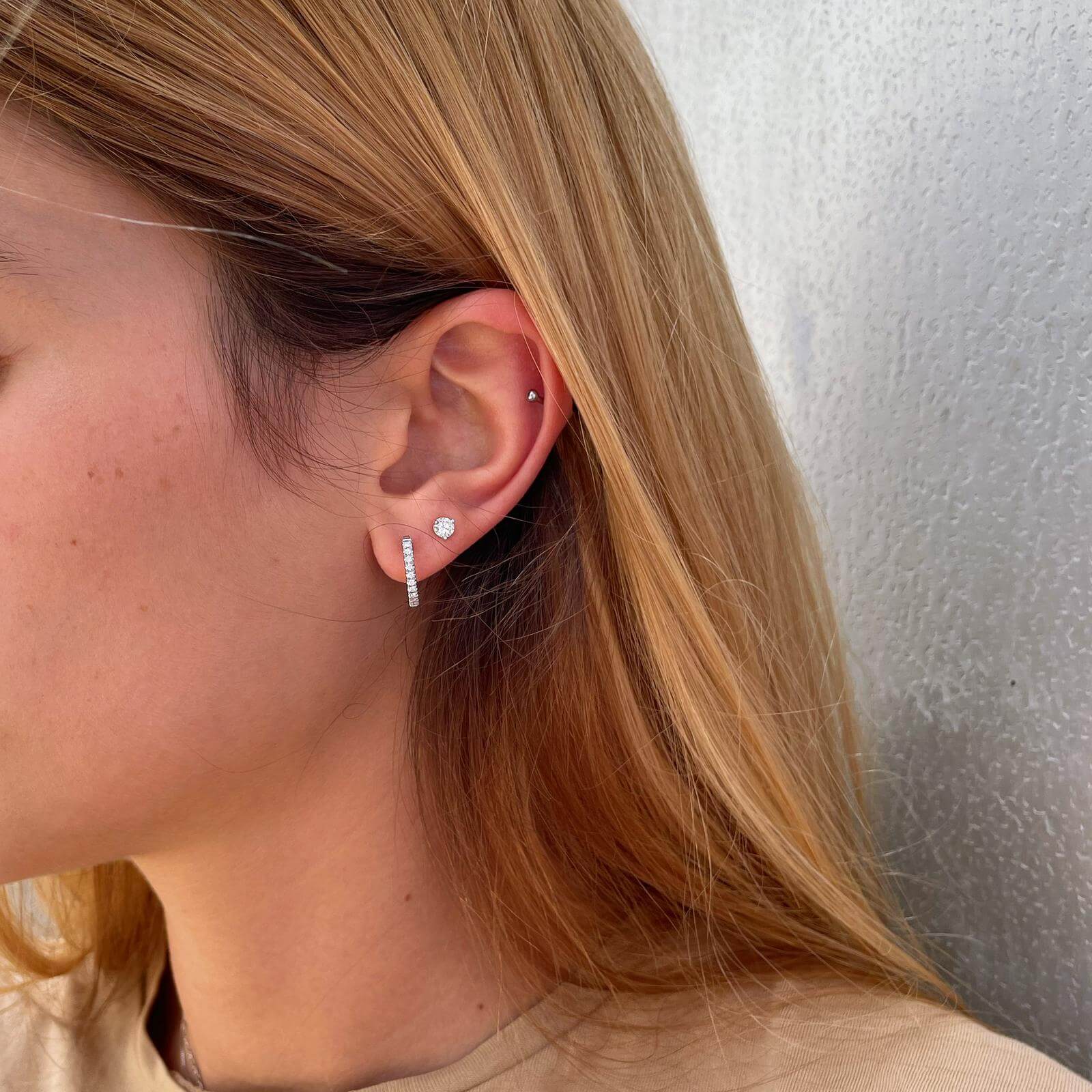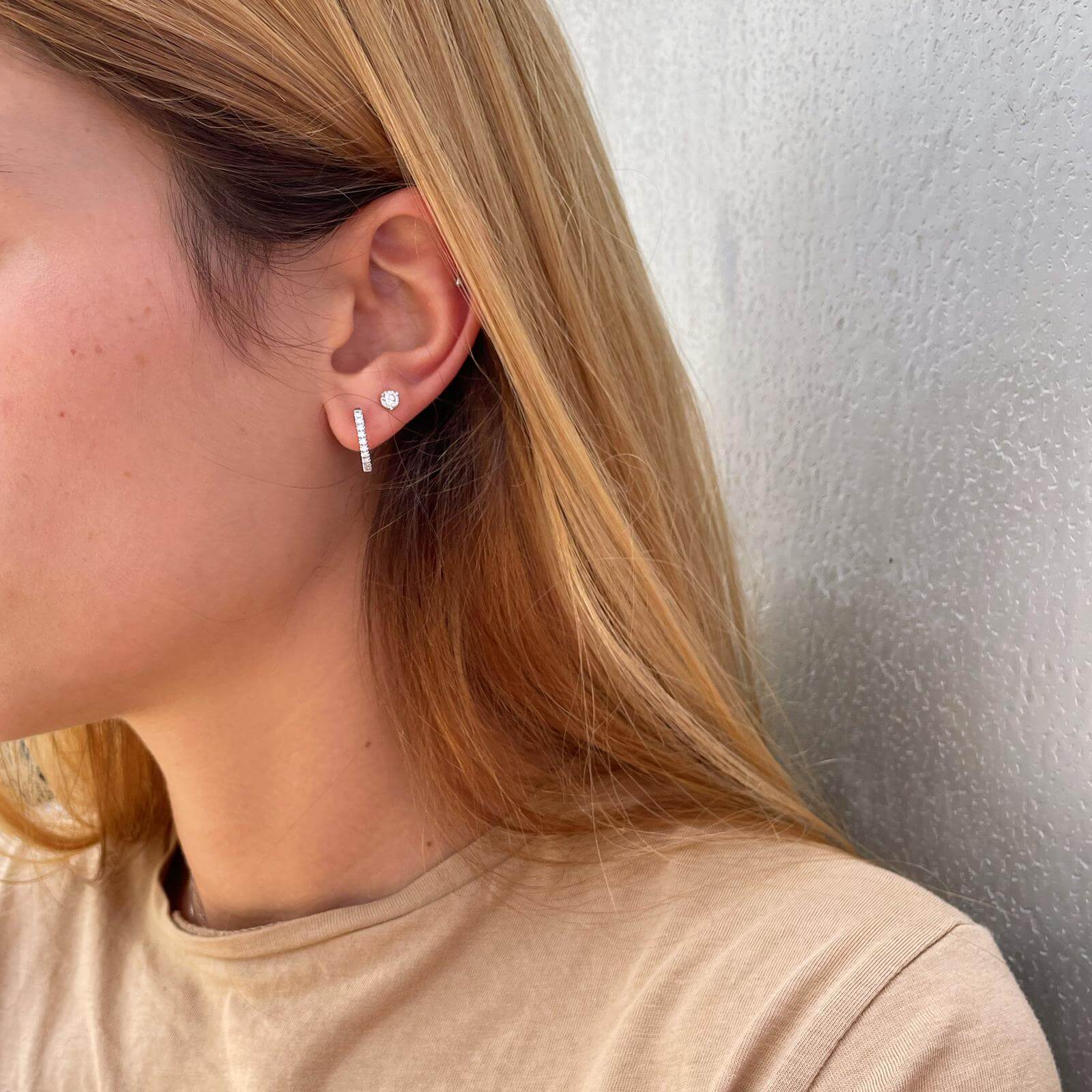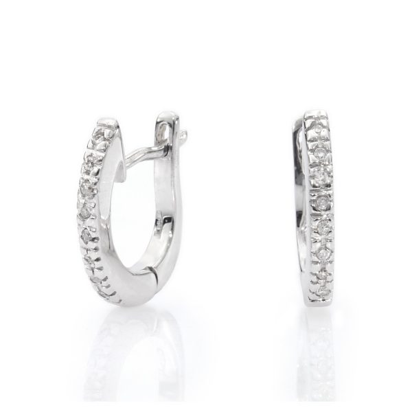 Fine little Hoop earrings set with high quality sparkling diamonds, suitable for everyday, work, and any social event. Earrings that do not have to be removed. Total diamonds 0.15 carats