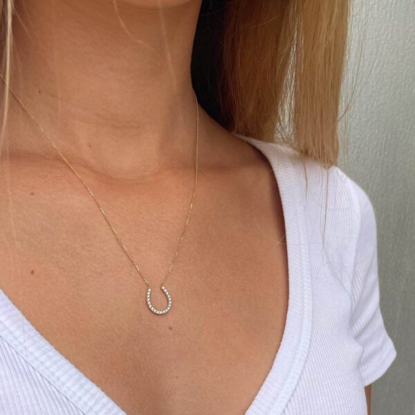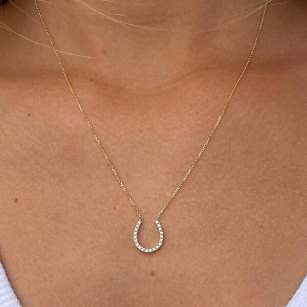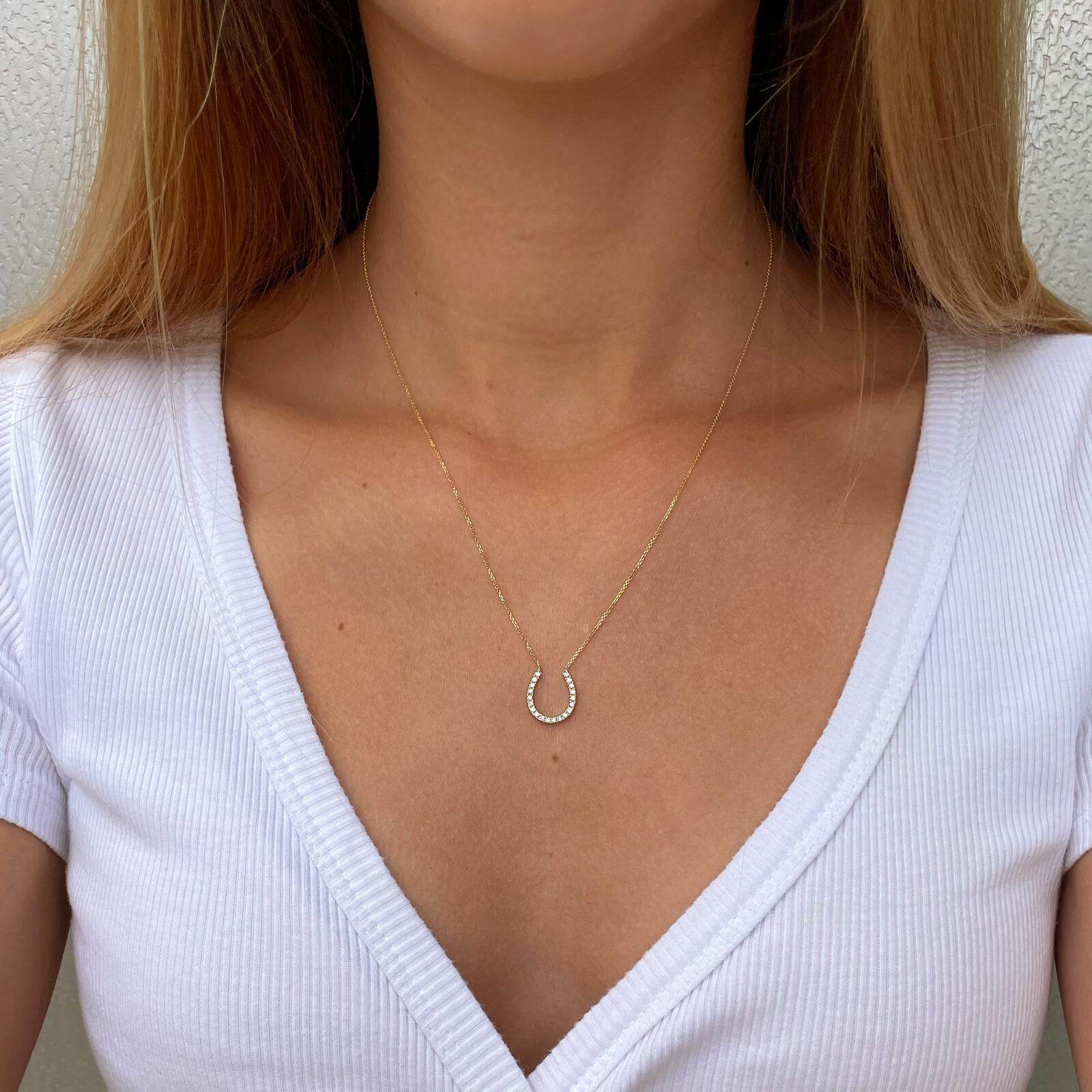 Stylish and delicate horseshoe pendant carefully set with 21 sparkling diamonds weighing 0.21 carats. A pendant with a contemporary and young look that also fits as a birthday or anniversary gift.