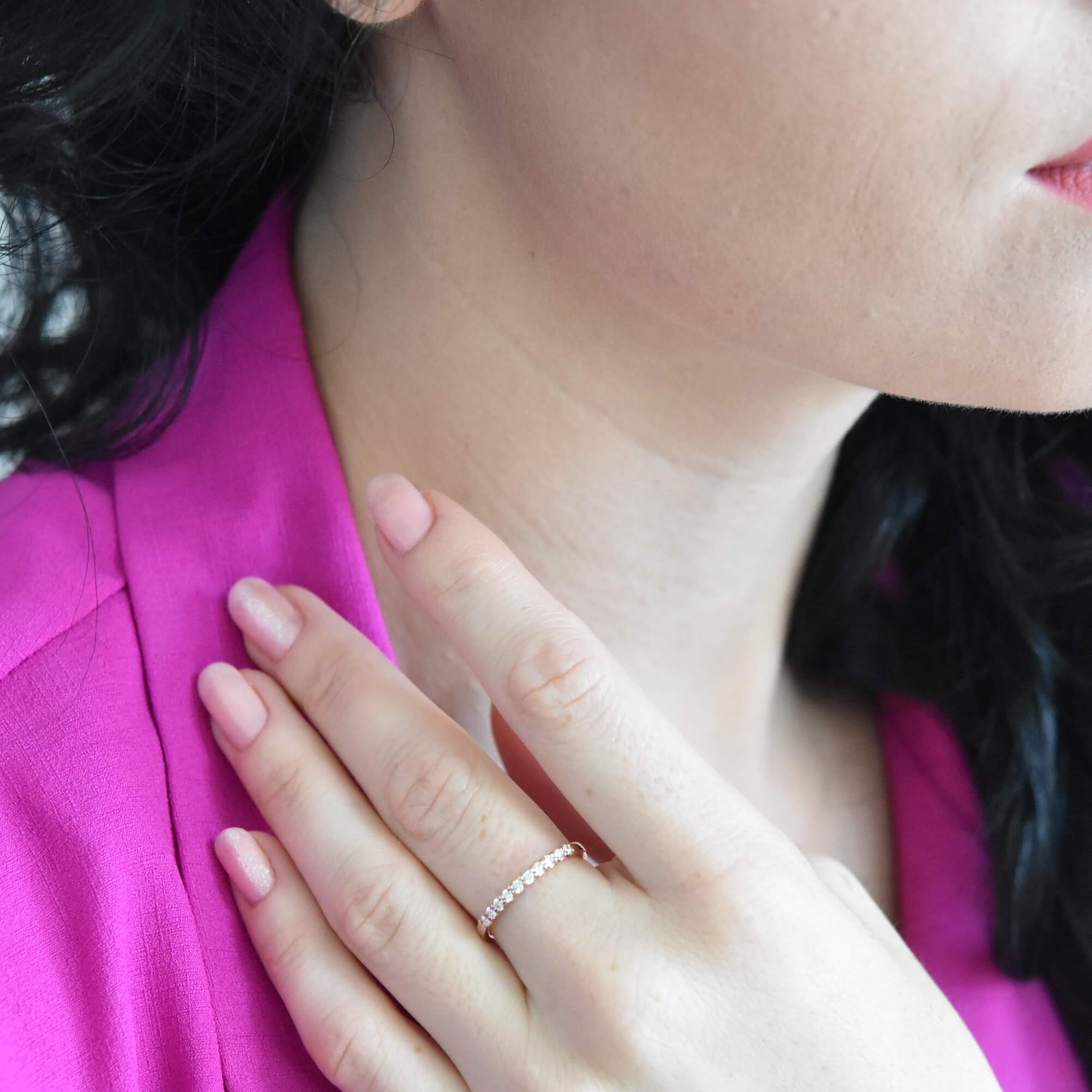 A diamond ring for every day as a sparkling addition to your daily look, or can fit great with an engagement ring.