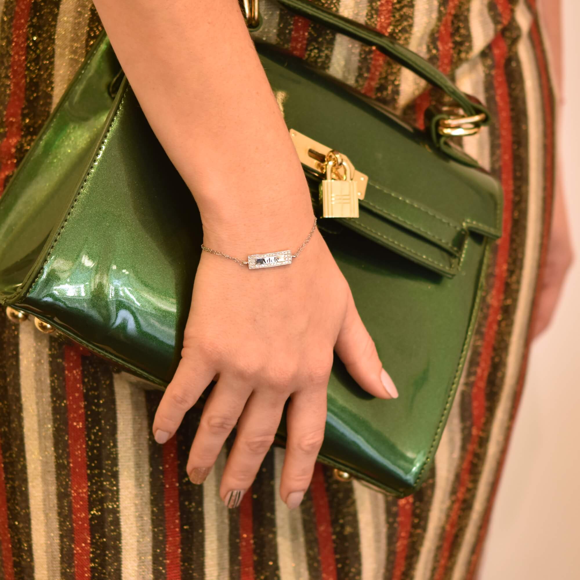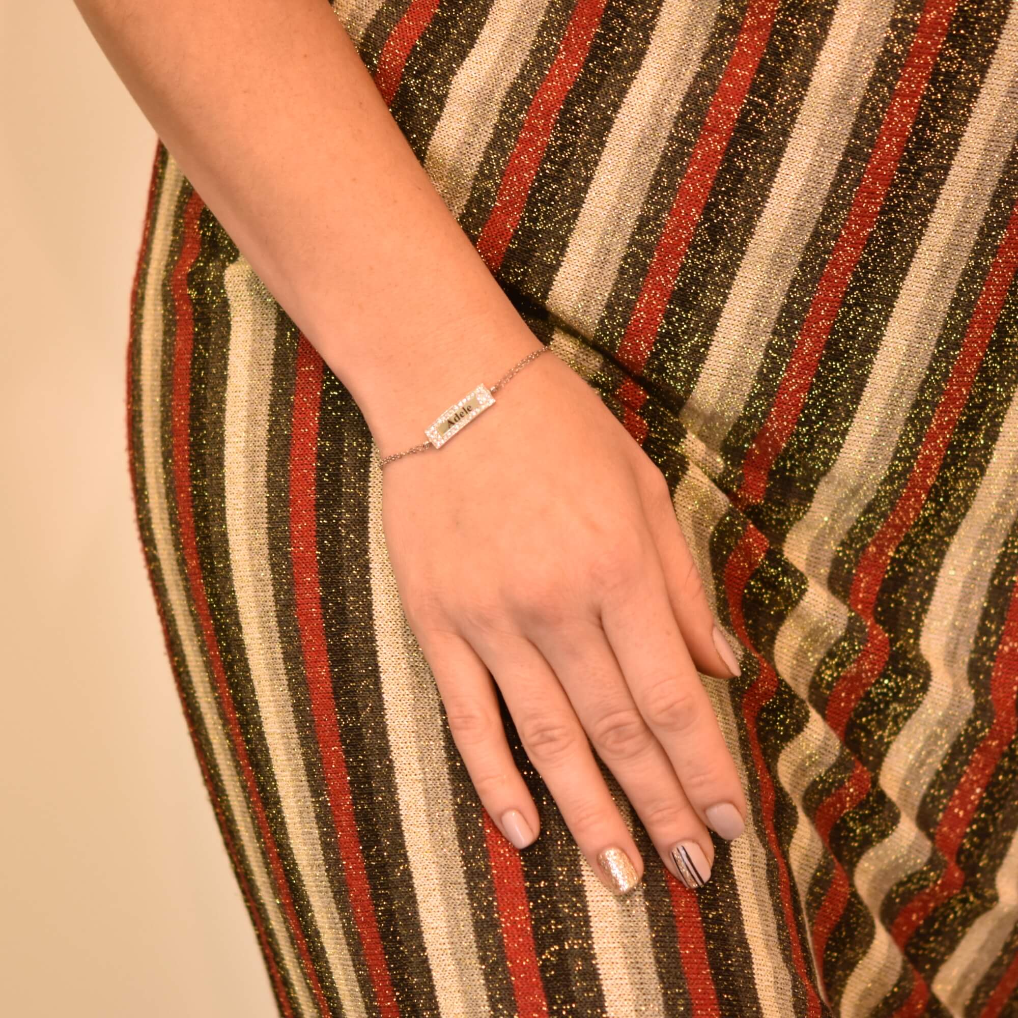A diamond bracelet with a refined and elegant look with 36 sparkling diamonds, 0.36 carats total. A sparkling diamond bracelet that can be engraved with the names of your loved ones.