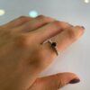 A fashionable and delicate black diamond engagement ring set in the center with a shiny 0.60 carat black diamond and on each side sparkling diamonds weighing 0.17 carats in total. A black diamond ring is full of elegance and chic, and the white diamonds enhance the black diamond in the center and give it a special look.