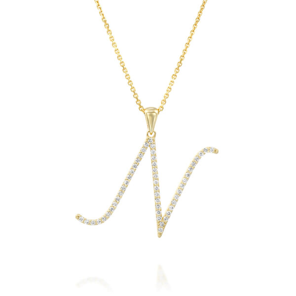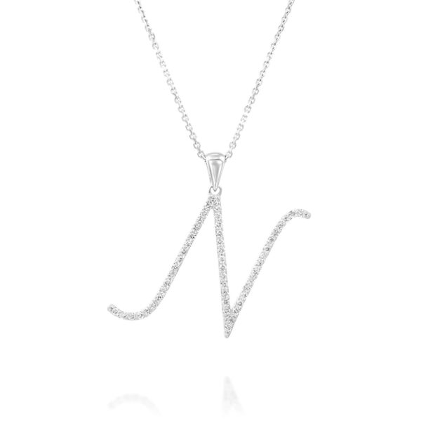 Big and impressive pendant with your letter set with sparkling white diamonds. This diamond pendant can be produced in any letter you choose in a variety of designs.