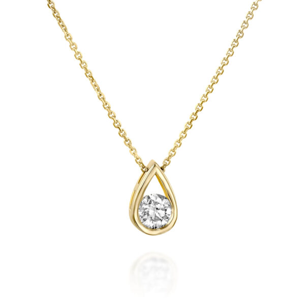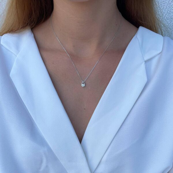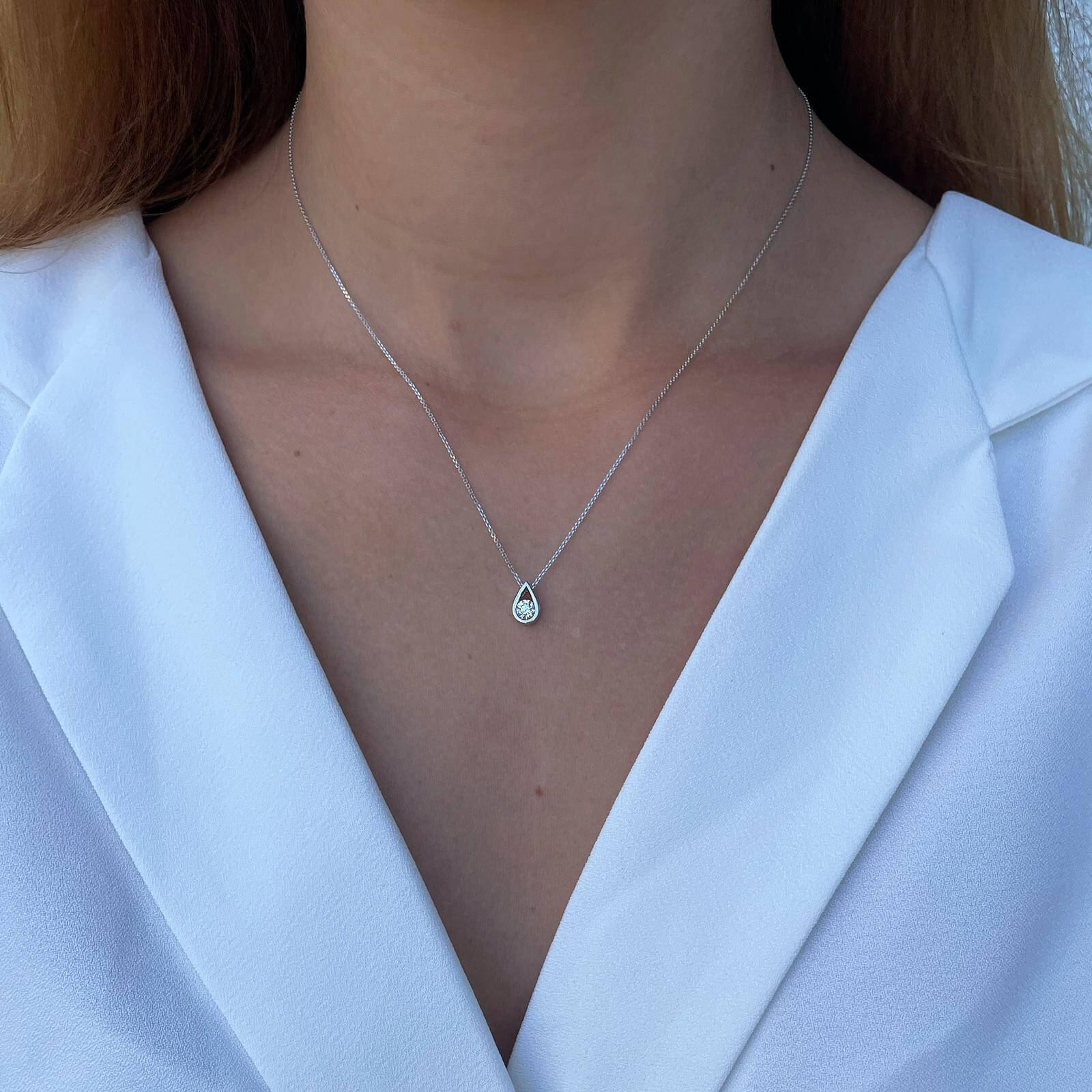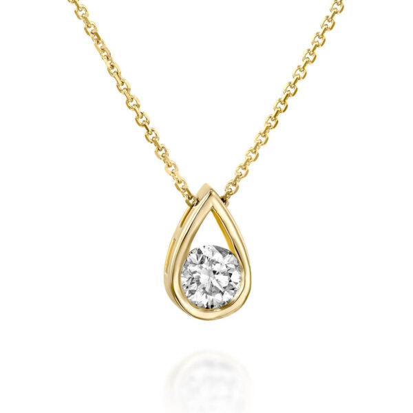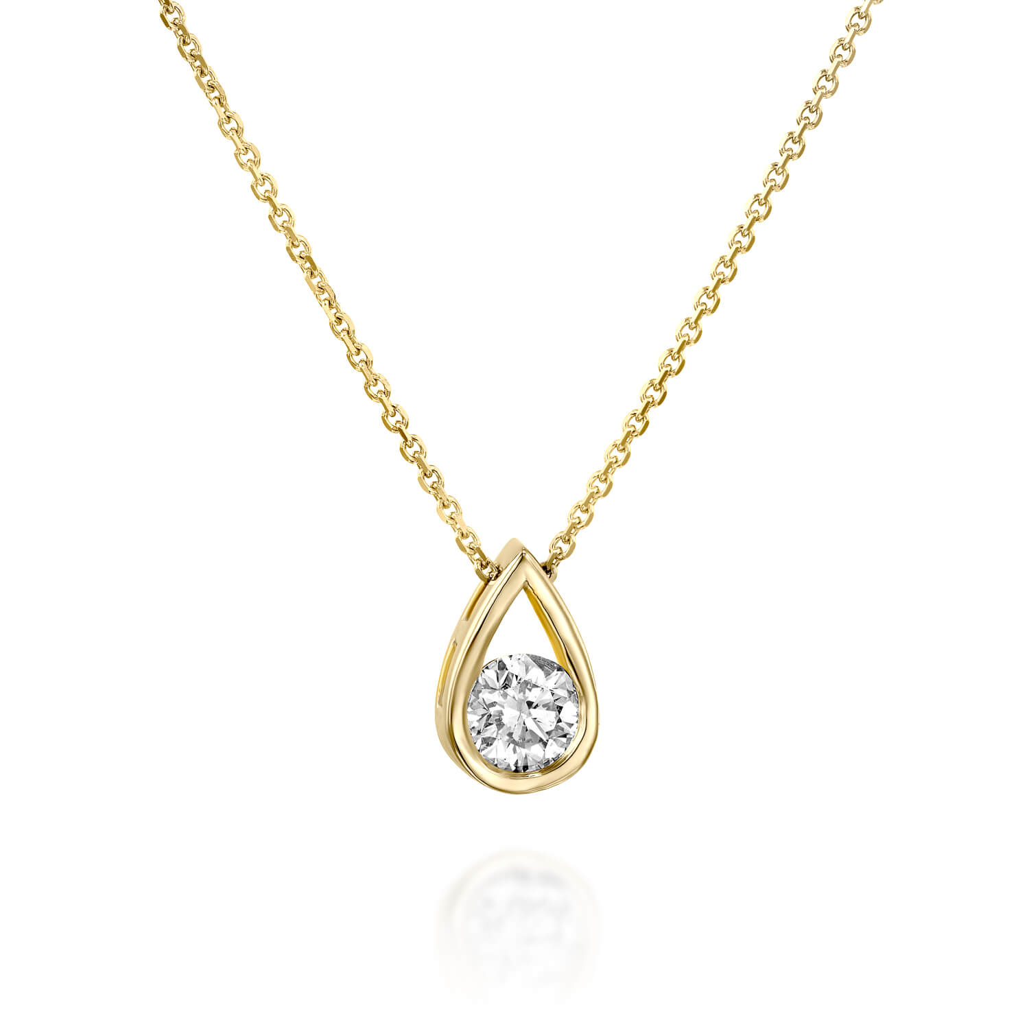 A fashionable and delicate diamond necklace with a drop-shaped gold frame that enhances its presence. A necklace that fits young women and upgrades their everyday look.