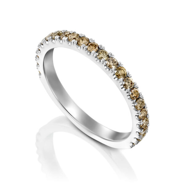 An elegant half eternity brown diamond ring set with 22 diamonds weighing 0.44 carats total. A classical diamond ring with diamonds of a special champagne color.