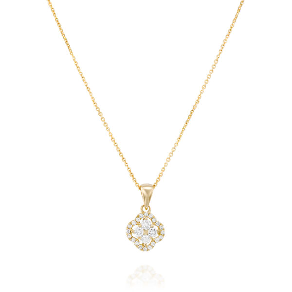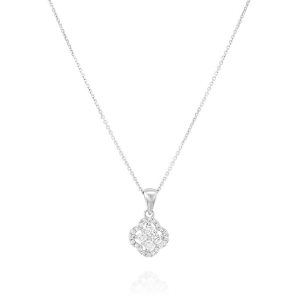 A classic and delicate clover diamond pendant set with 24 sparkling little diamonds weighing 0.26 carats total. A diamond pendant with a refined presence. There are matching earrings with this pendant.