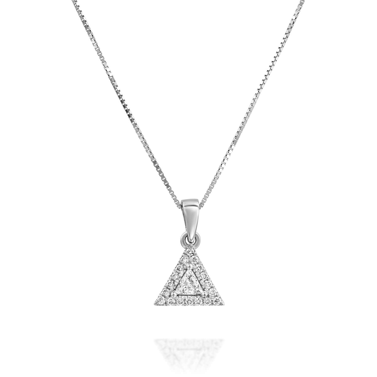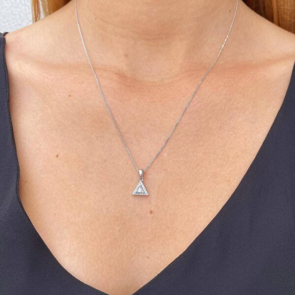 A triangle diamond pendant for one who is looking for a sparkling and unique look.