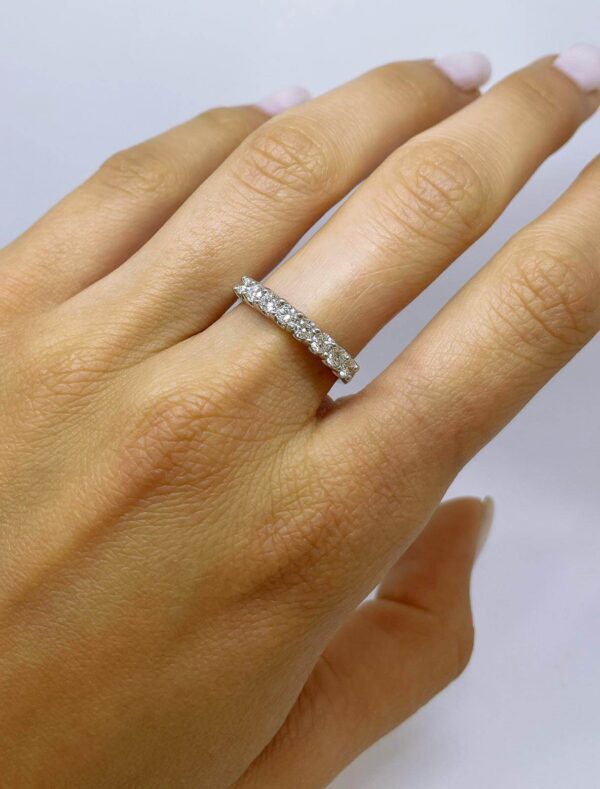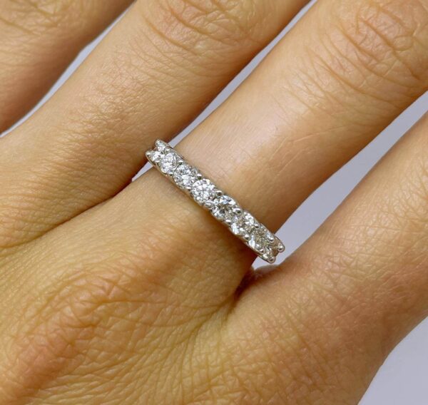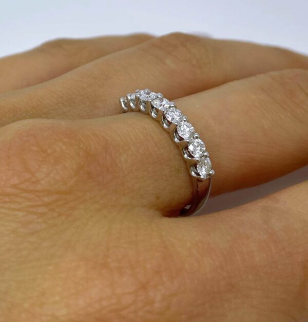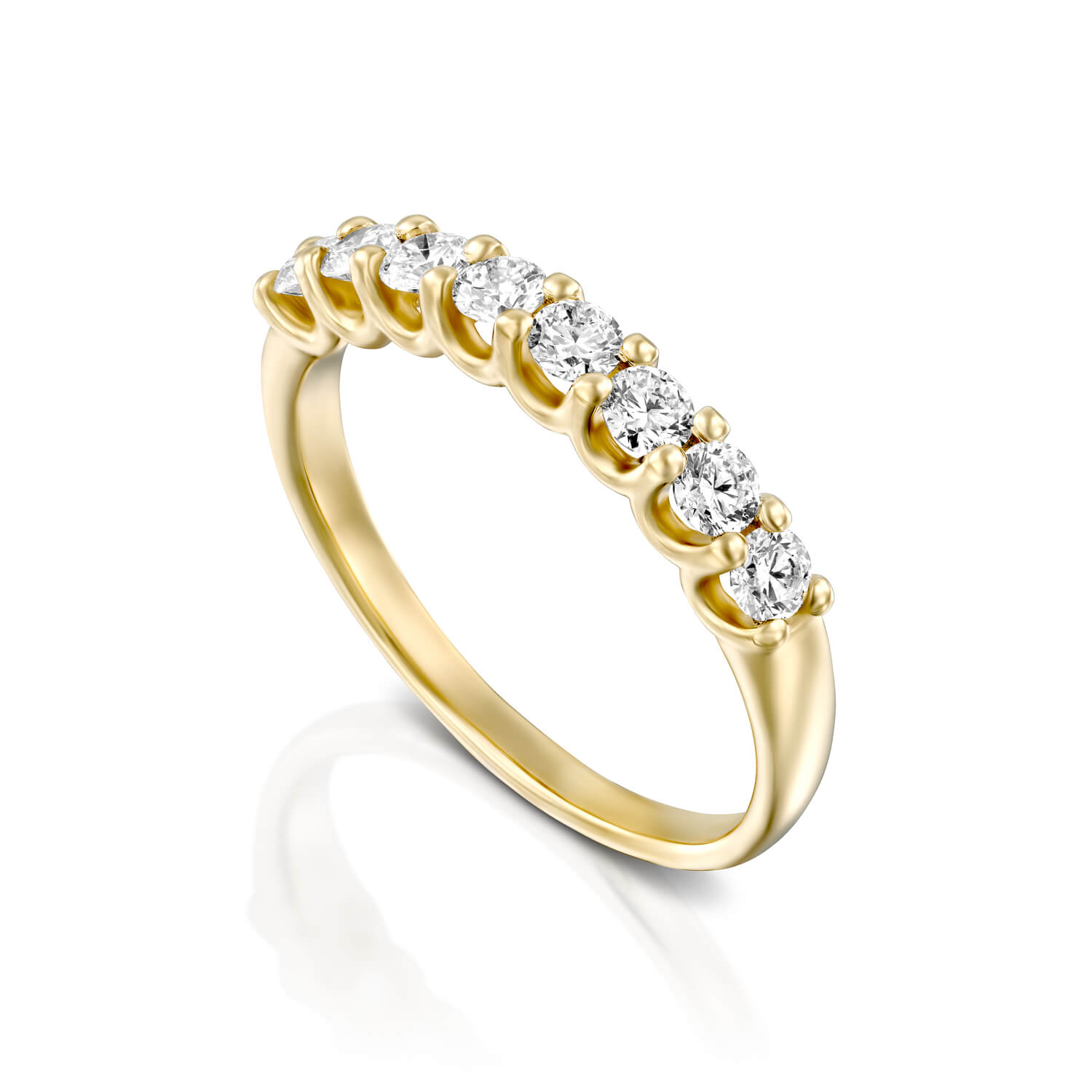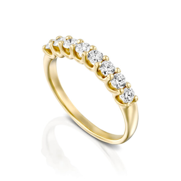 A stylish and impressive diamond ring set with a row of 8 large, sparkling diamonds weighing 0.56 carats in total.