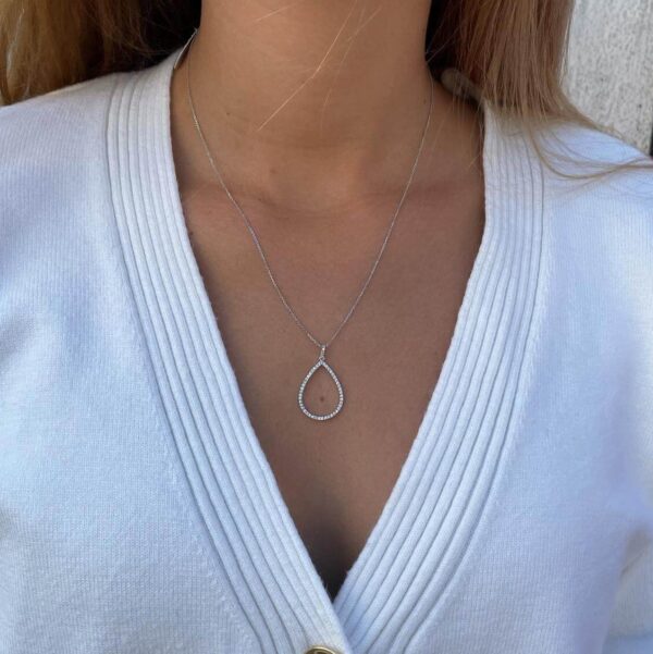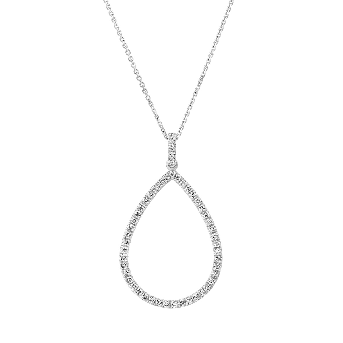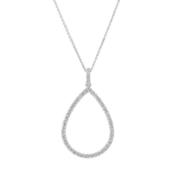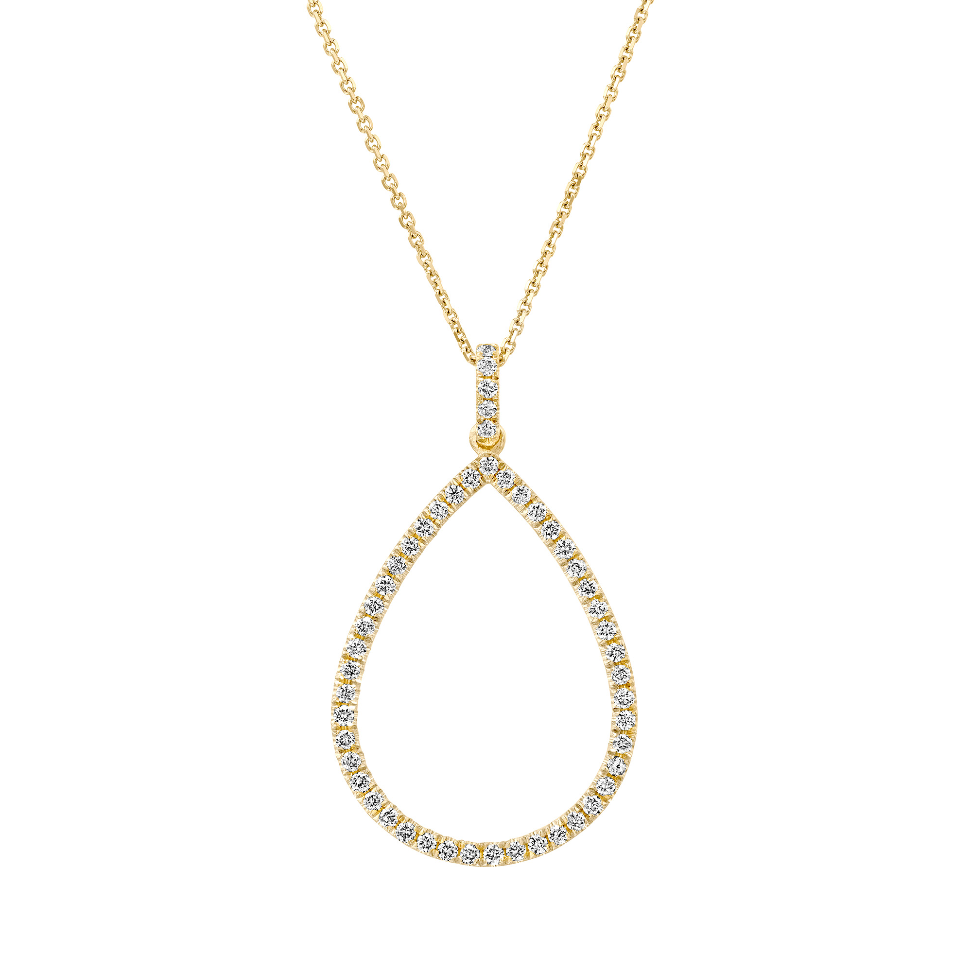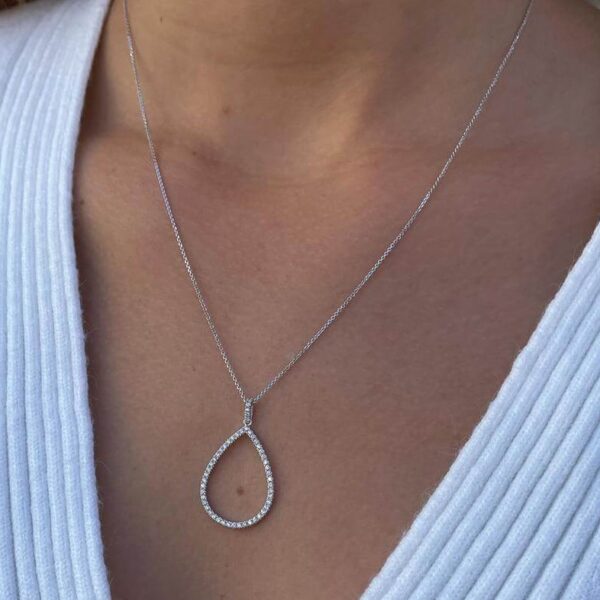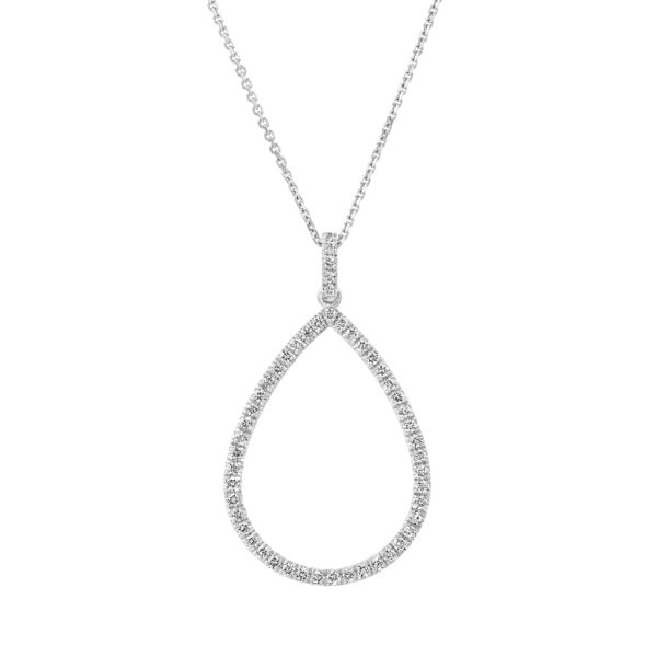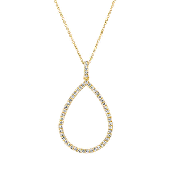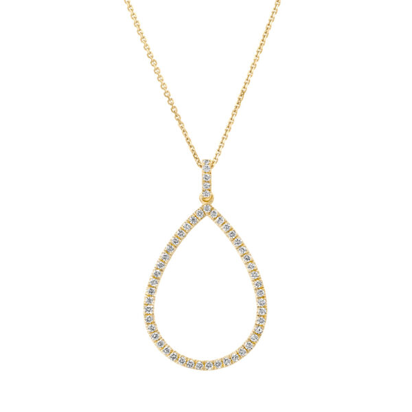 Modern large drop diamond pendant set with high quality sparkling diamonds 0.32 carats total. A diamond pendant for everyday with a sparkling presence.