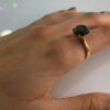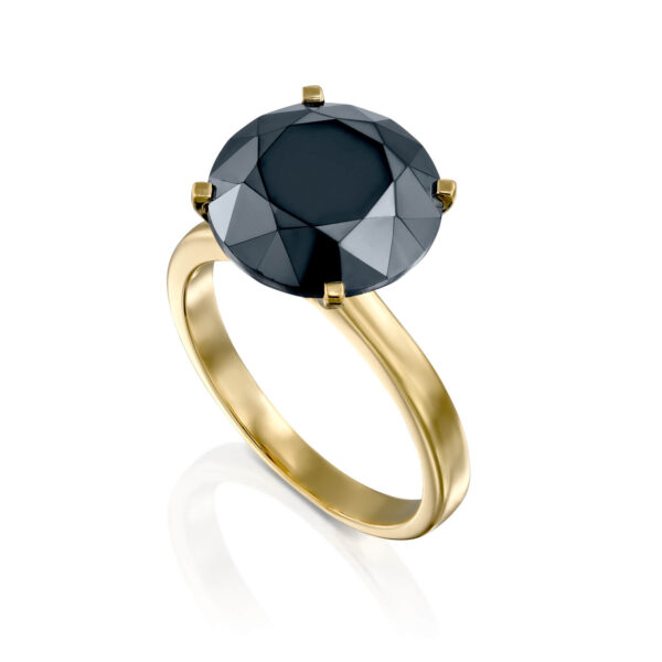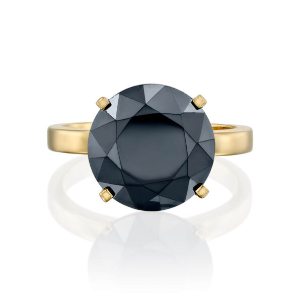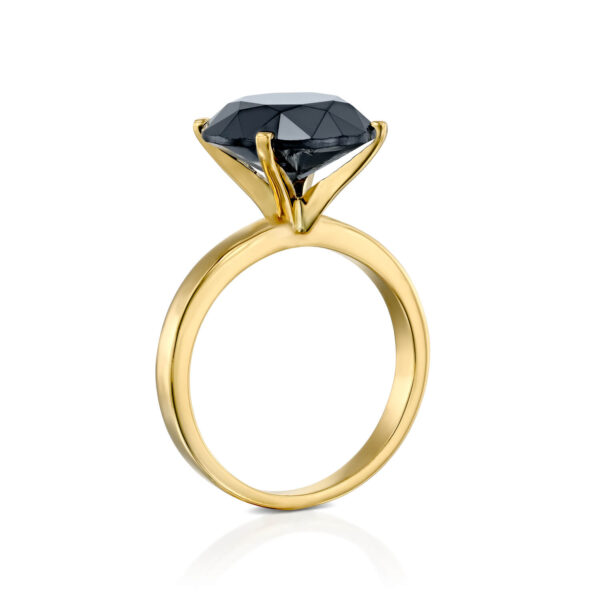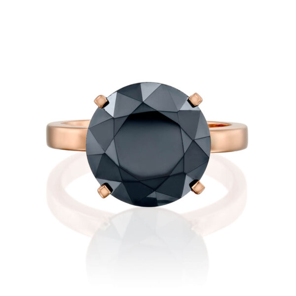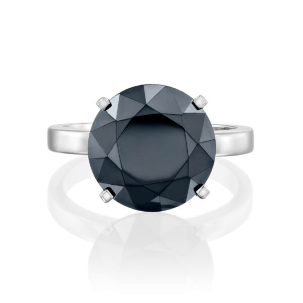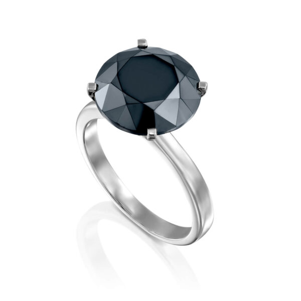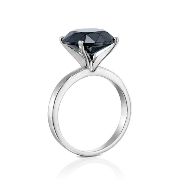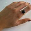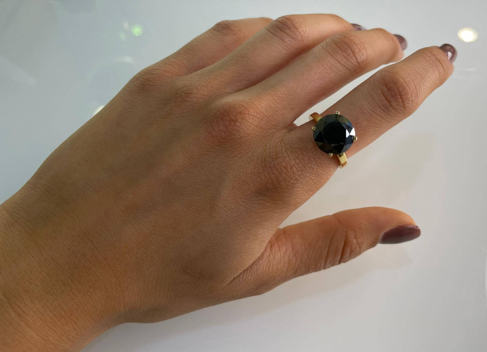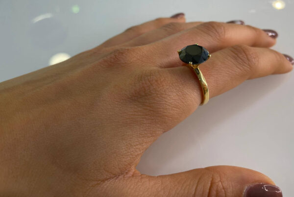 An elegant and impressive black spinel gemstone ring set with a 6.50 carat black spinel. A very large black gemstone ring with eye-catching chic because of the size of the stone. A ring with a clean design where the stone is the main thing.