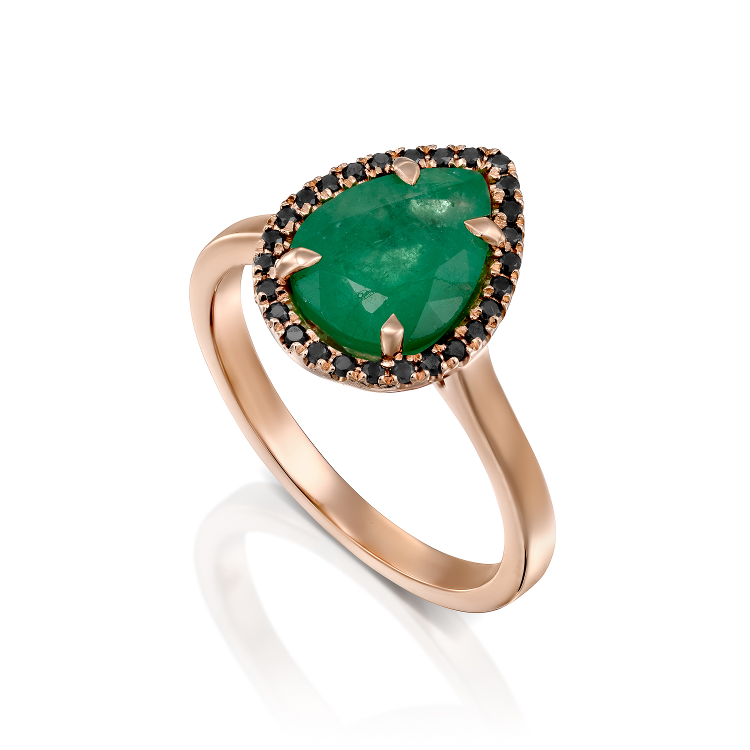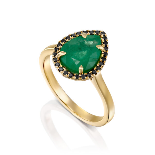 Large Pear Ring With Large Emerald And Black Diamonds ELISKA