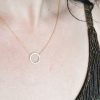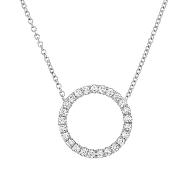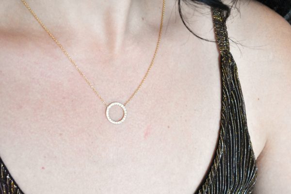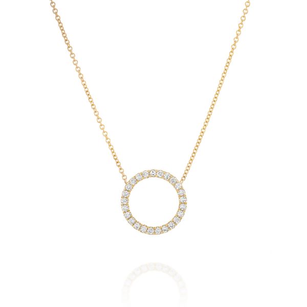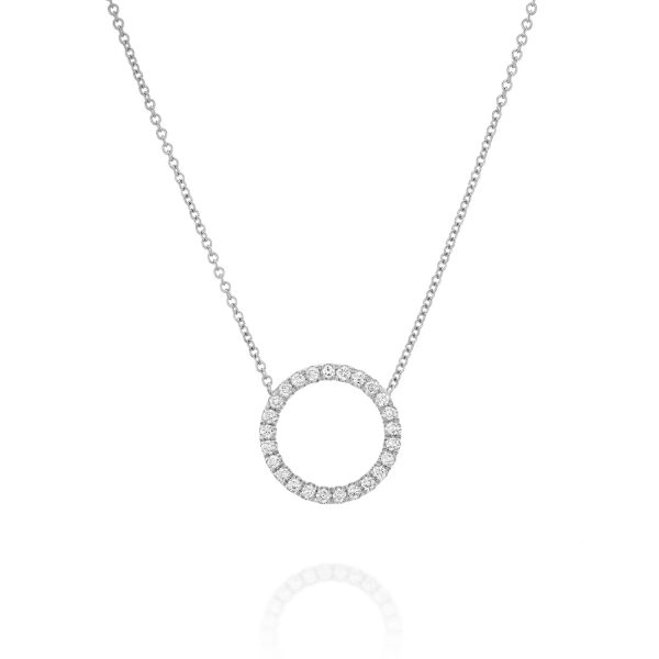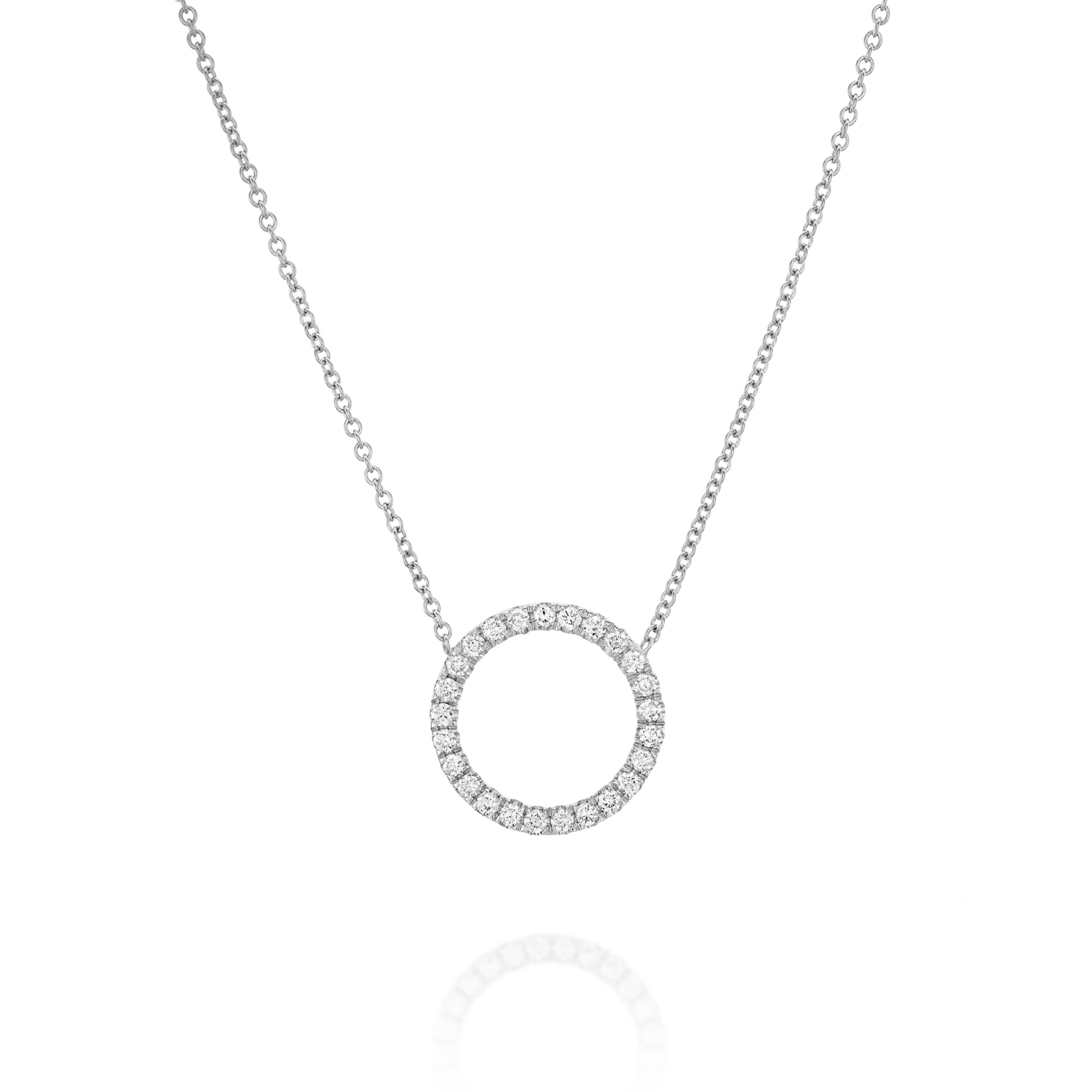 Delicate circle diamond necklace with a young look set with 25 sparkling small diamonds weighing 0.37 carats total. This diamond necklace is carefully crafted and designed as a perfect circle with a clean and modern look.