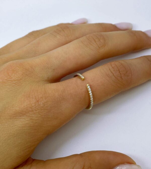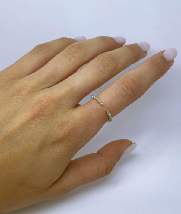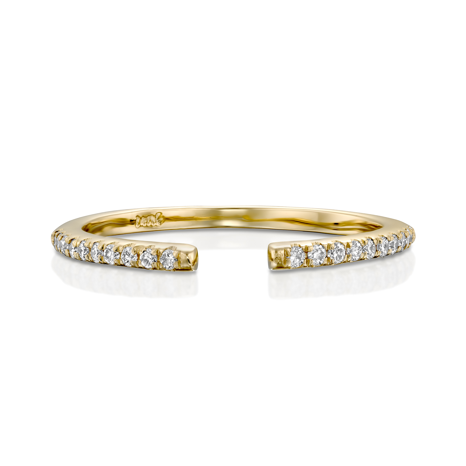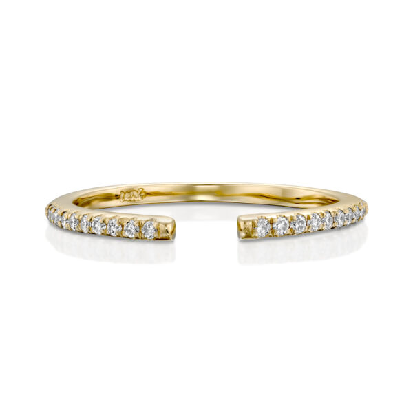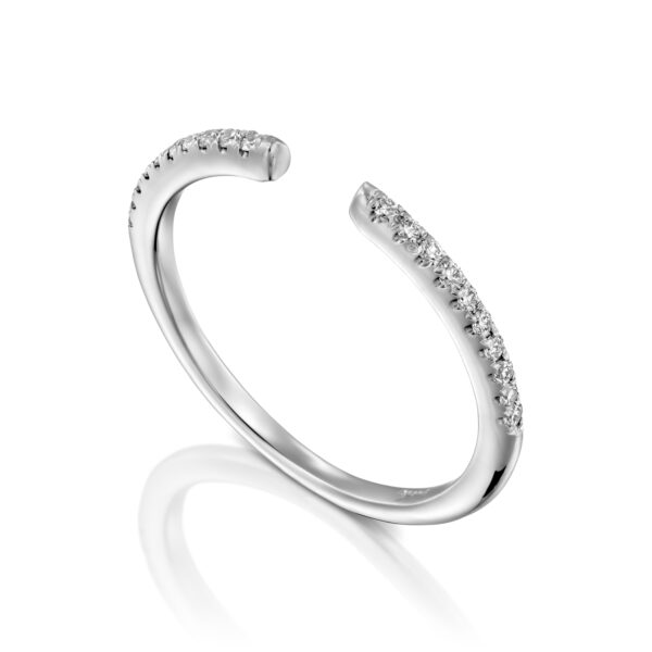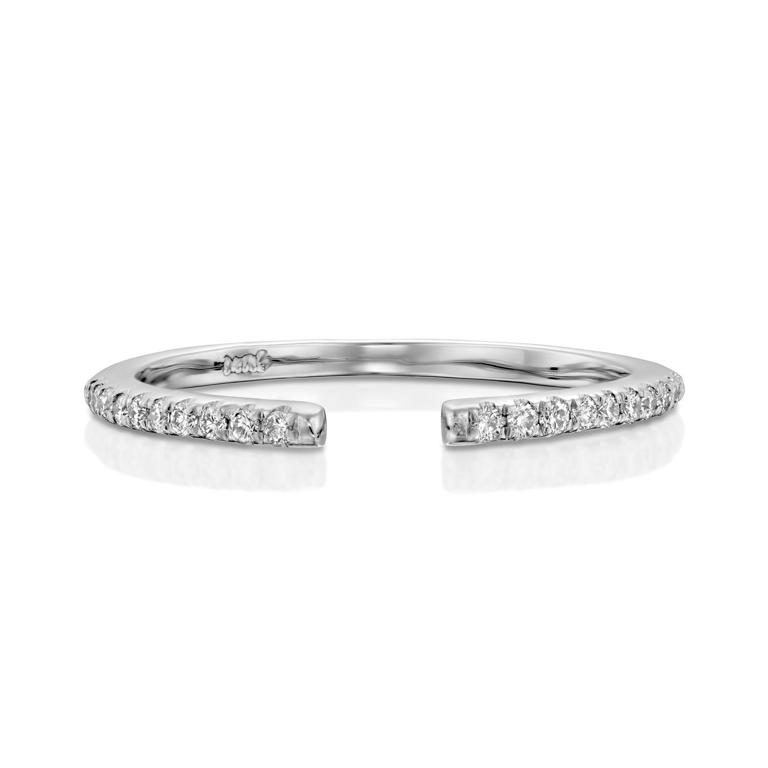 Delicate open wedding ring set with 20 brilliant diamonds weighing a total weight of 0.13 carats. This diamond ring is used as a delicate and sparkling jewel for daily life or special events, or as a sparkling addition to the engagement ring.