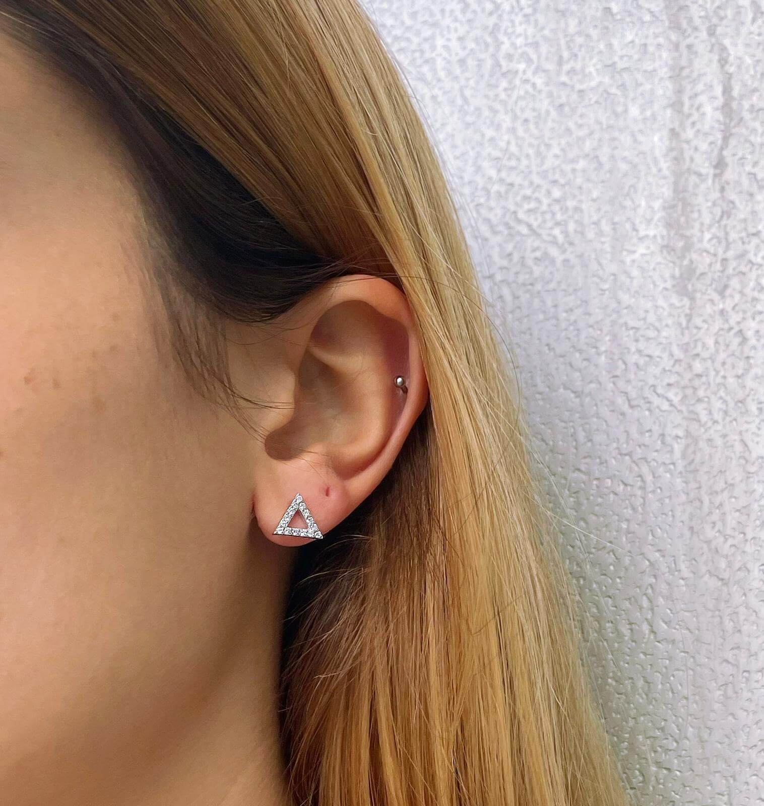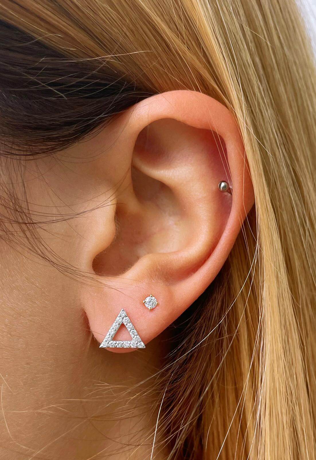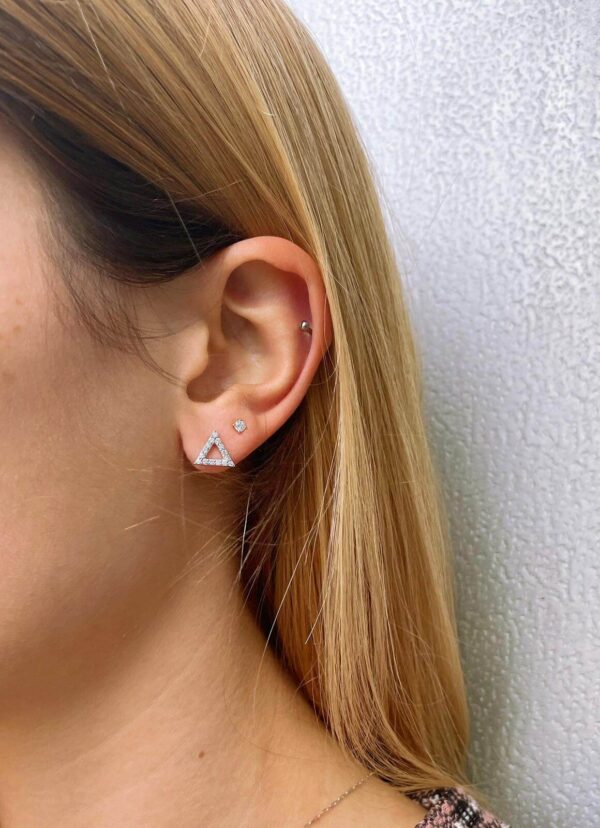 Designed and delicate earrings set with 0.18 carats diamonds. These earrings are crafted with 14k or 18k gold and secured with butterfly clasps or screw back.
