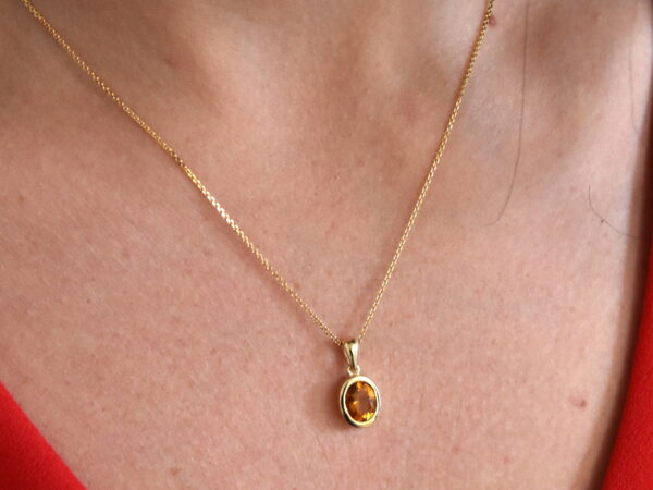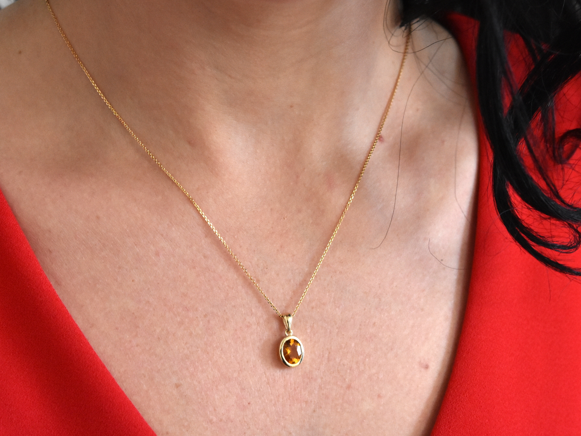 Oval blue topaz pendant. Dainty simple elegant design set with beautiful brown citrine 0.90ct.