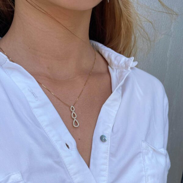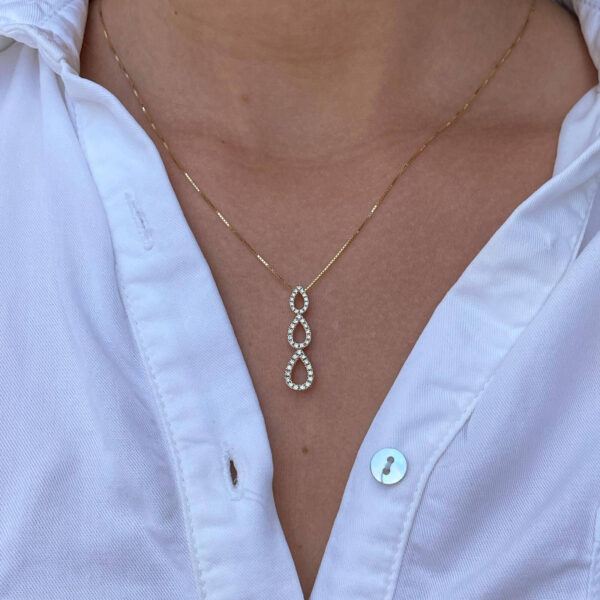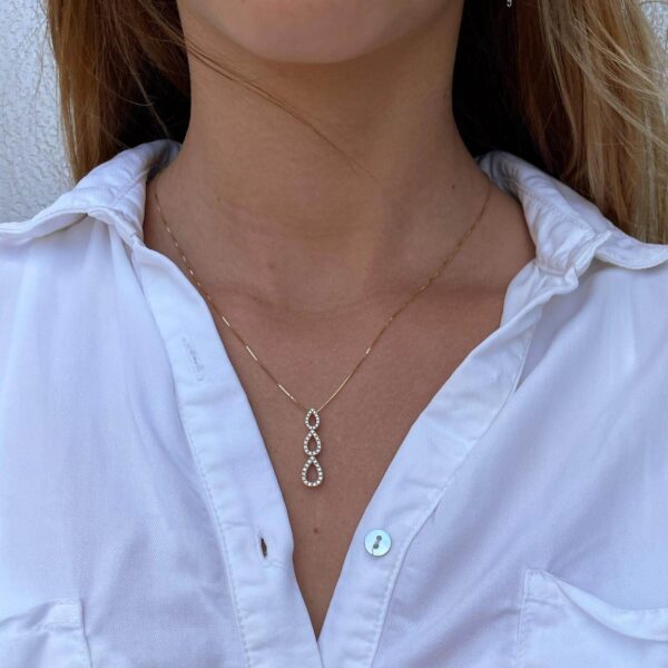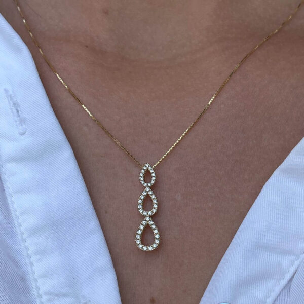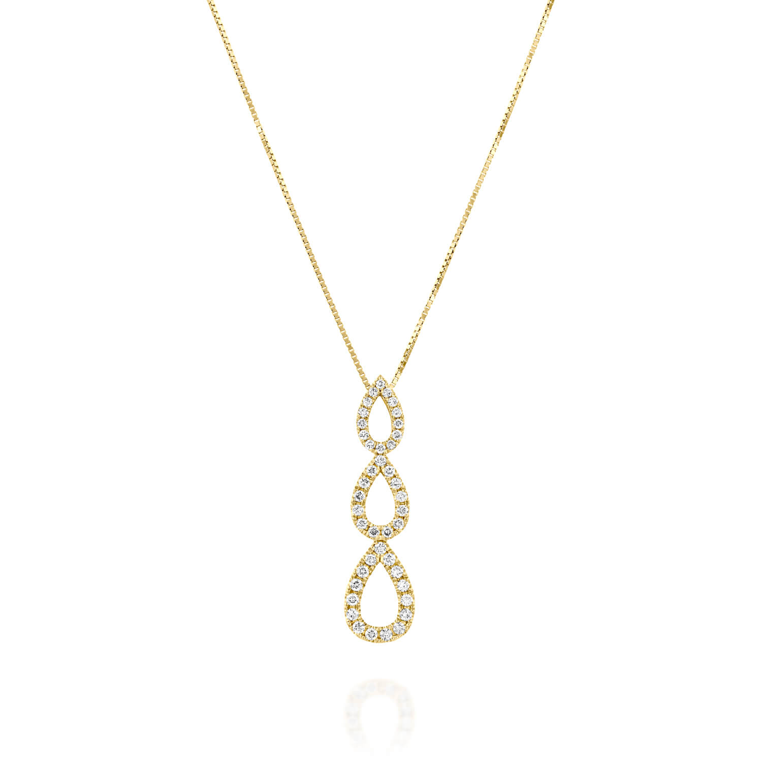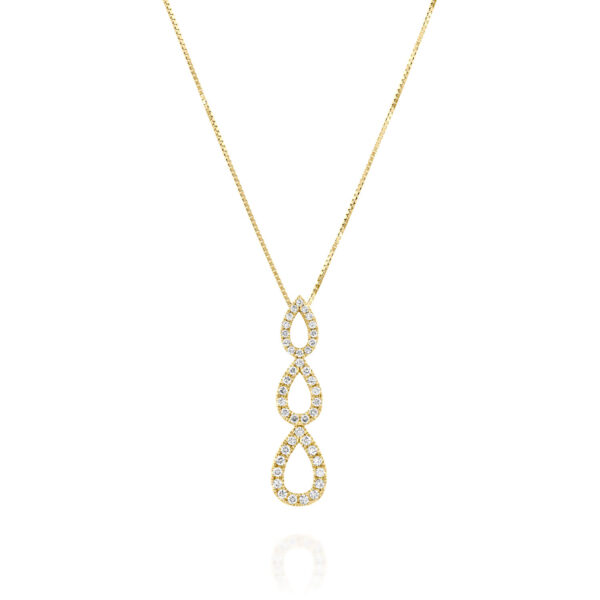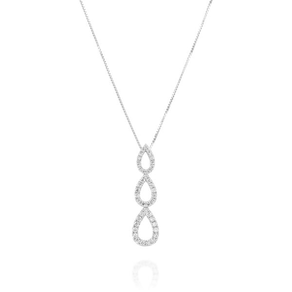 Prestigious and impressive three drops diamond pendant set with 41 diamonds weighing 0.32ct total. A diamond pendant with a presence that is elegant on the neckline.