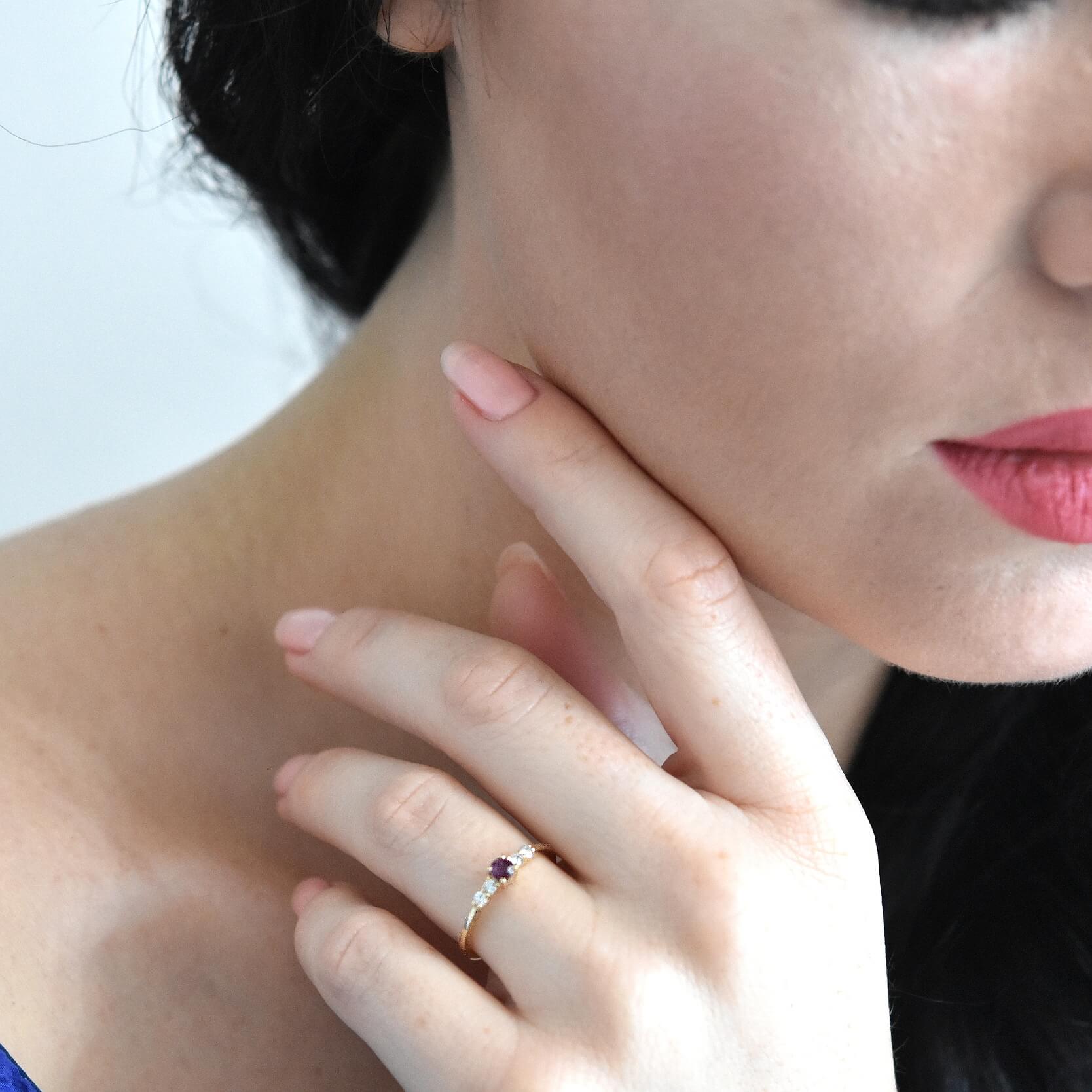 Can be wear as a delicate ruby & diamond ring to add color to your daily look