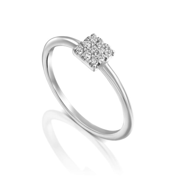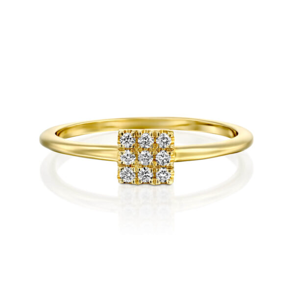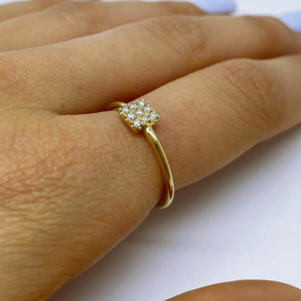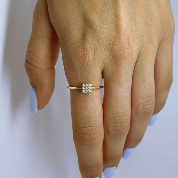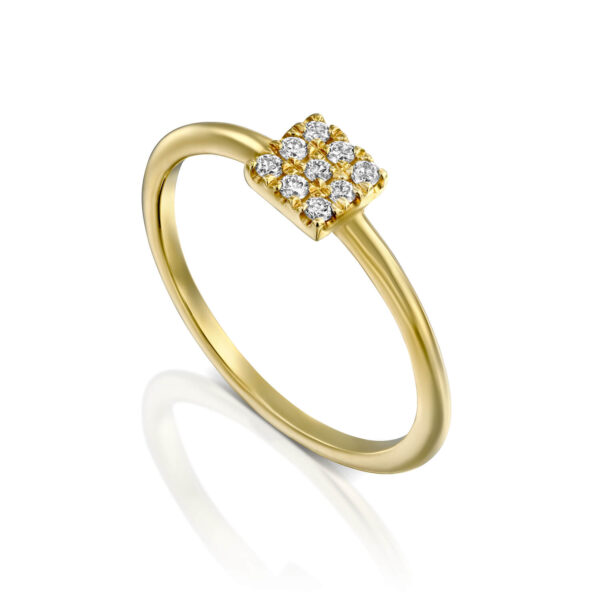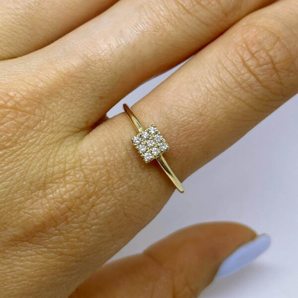Dainty diamonds Ring. Gold ring with brilliant diamonds in a square shape.